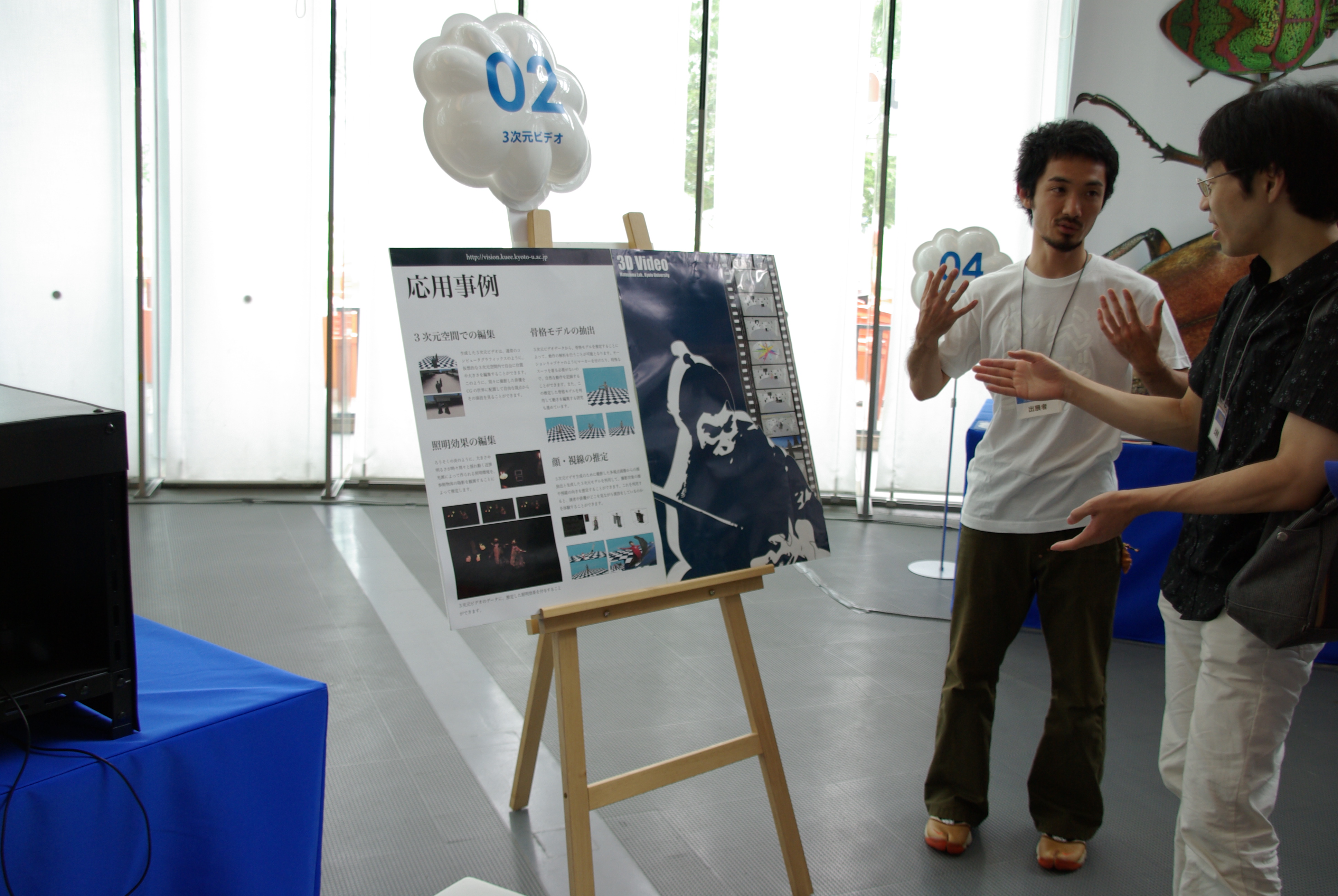 とんだりはねたり自由に動き回っている人の姿や形をぜんぶ記録したもの、これが3次元ビデオです。