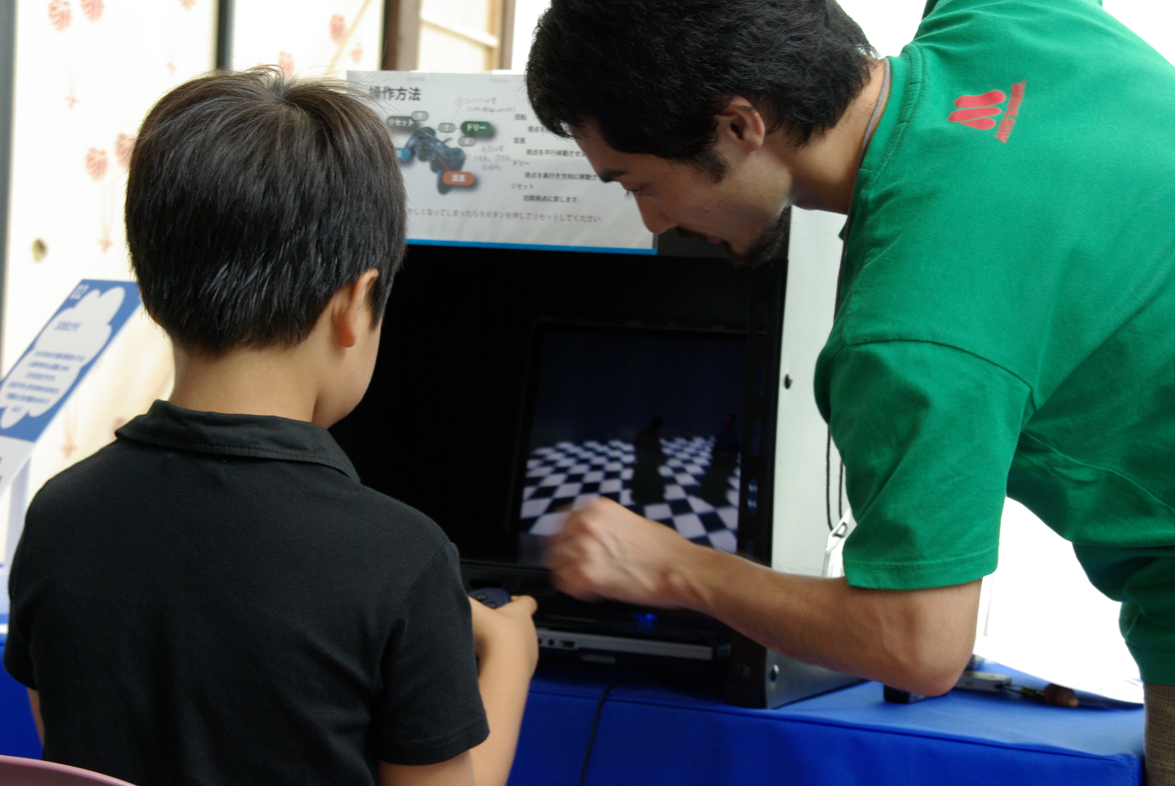 3次元ビデオを、好きな方向からながめたり、不思議なとび出す画面からのぞいてみよう。