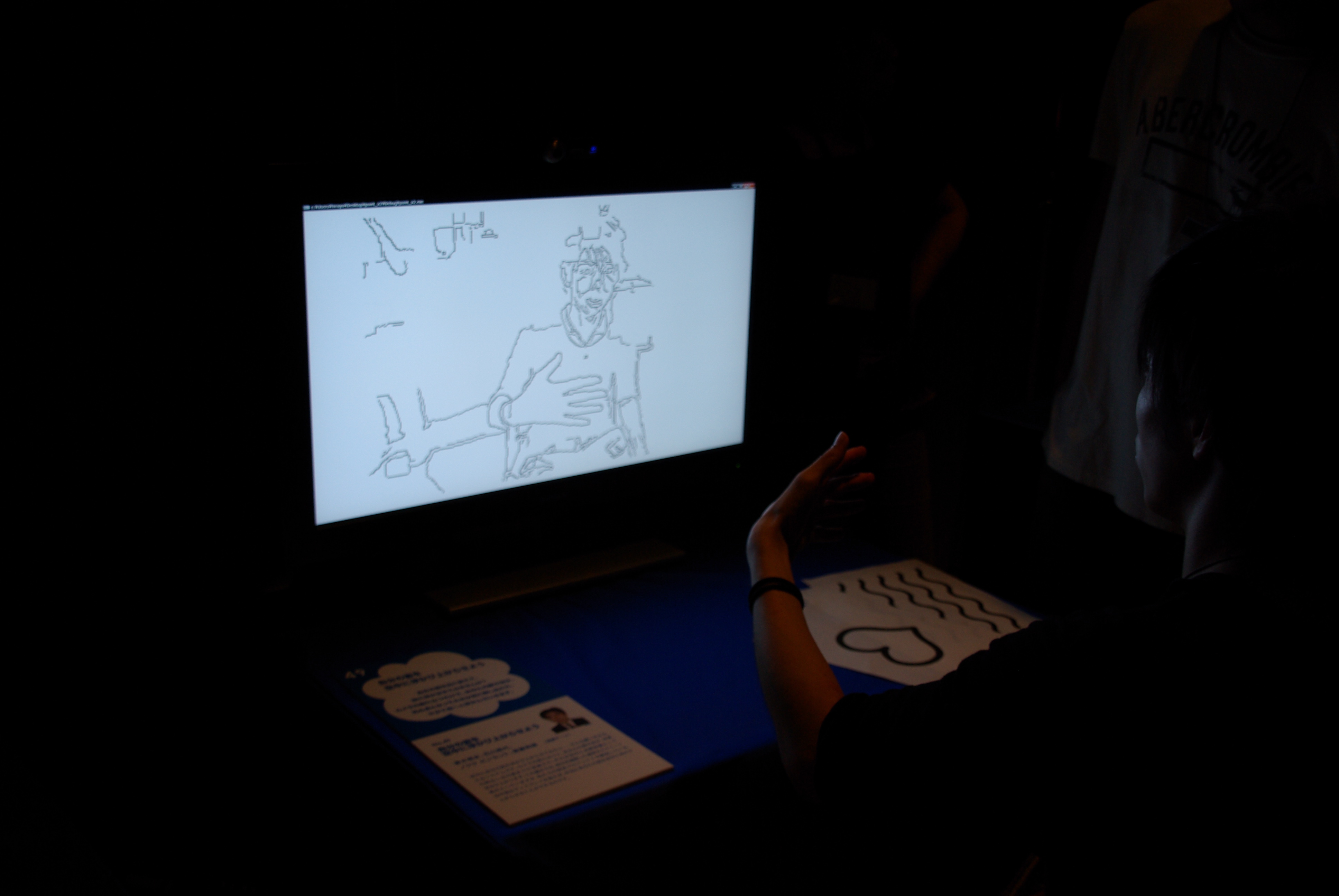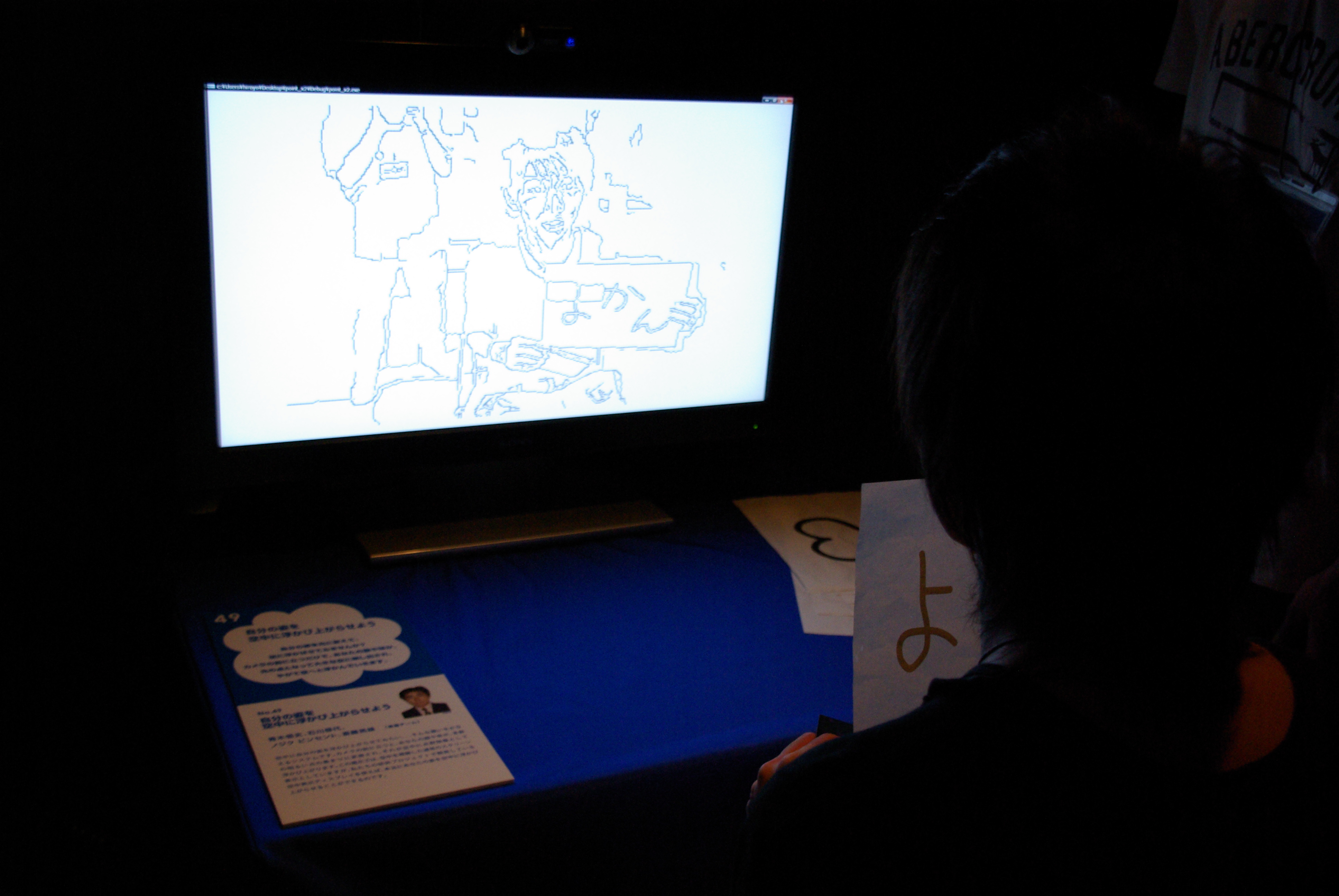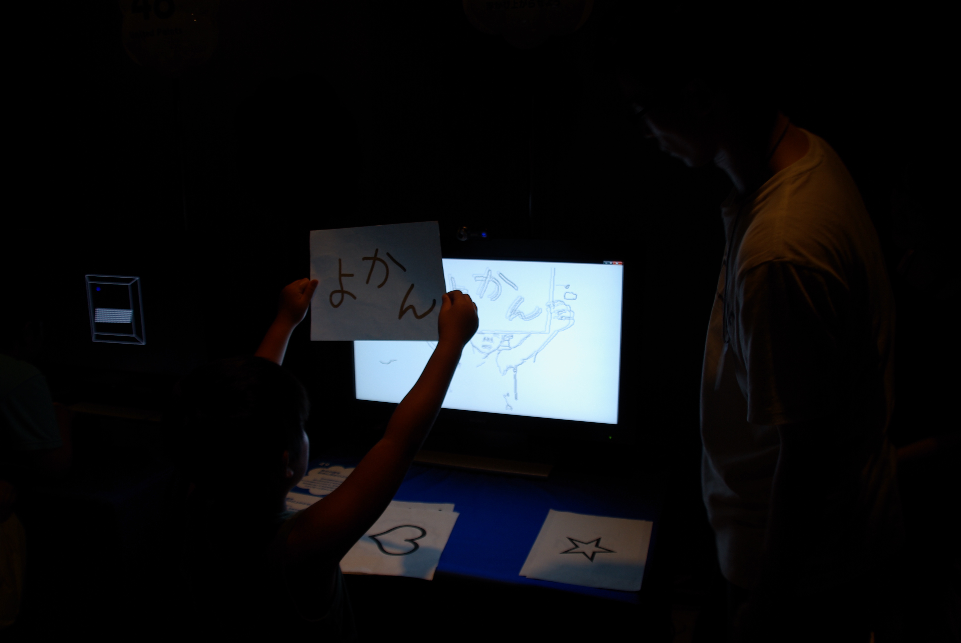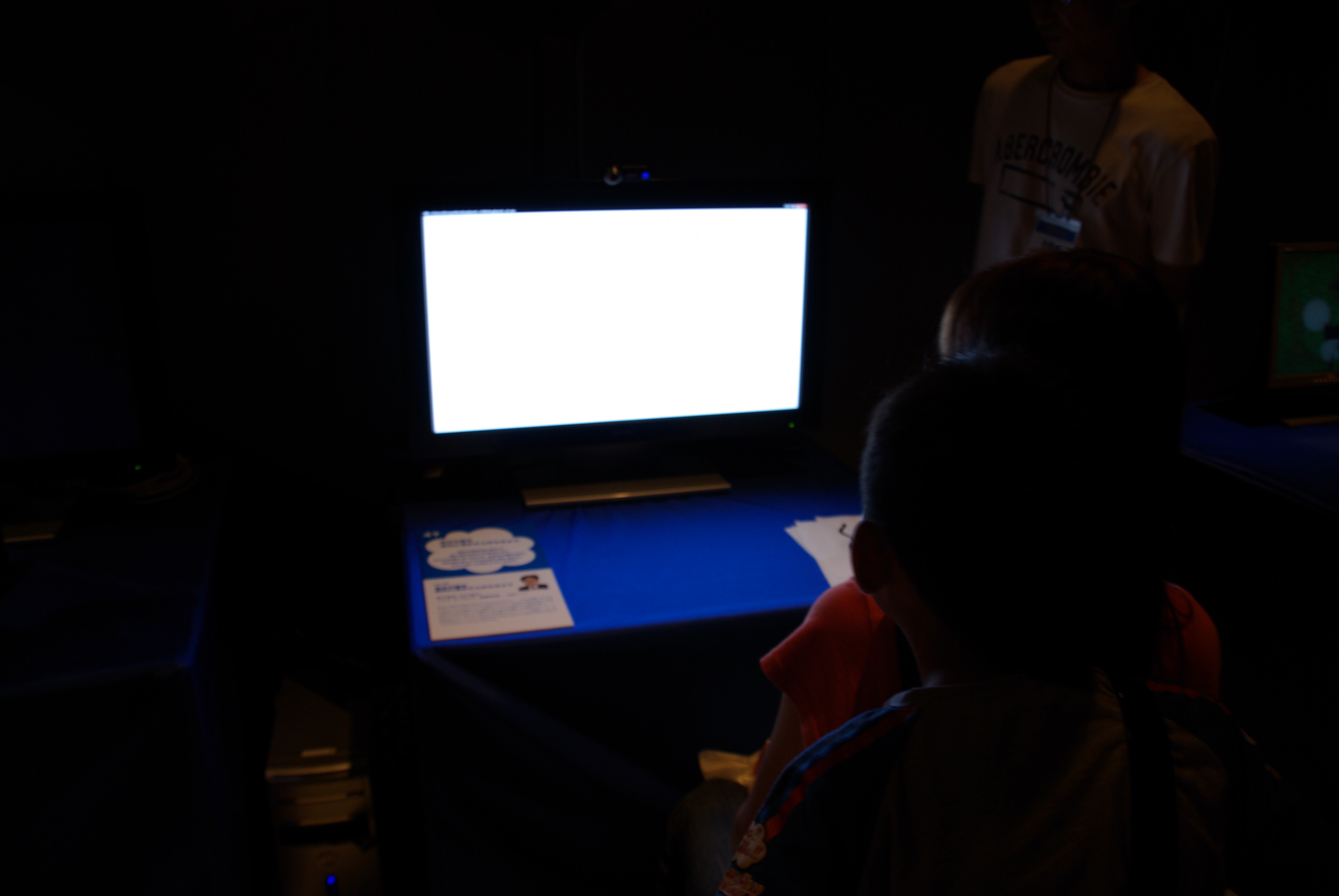 カメラの前に立つだけで、あなたの顔や体が、光の点となって大きな空に映し出され、やがて空へと浮かんでいきます。