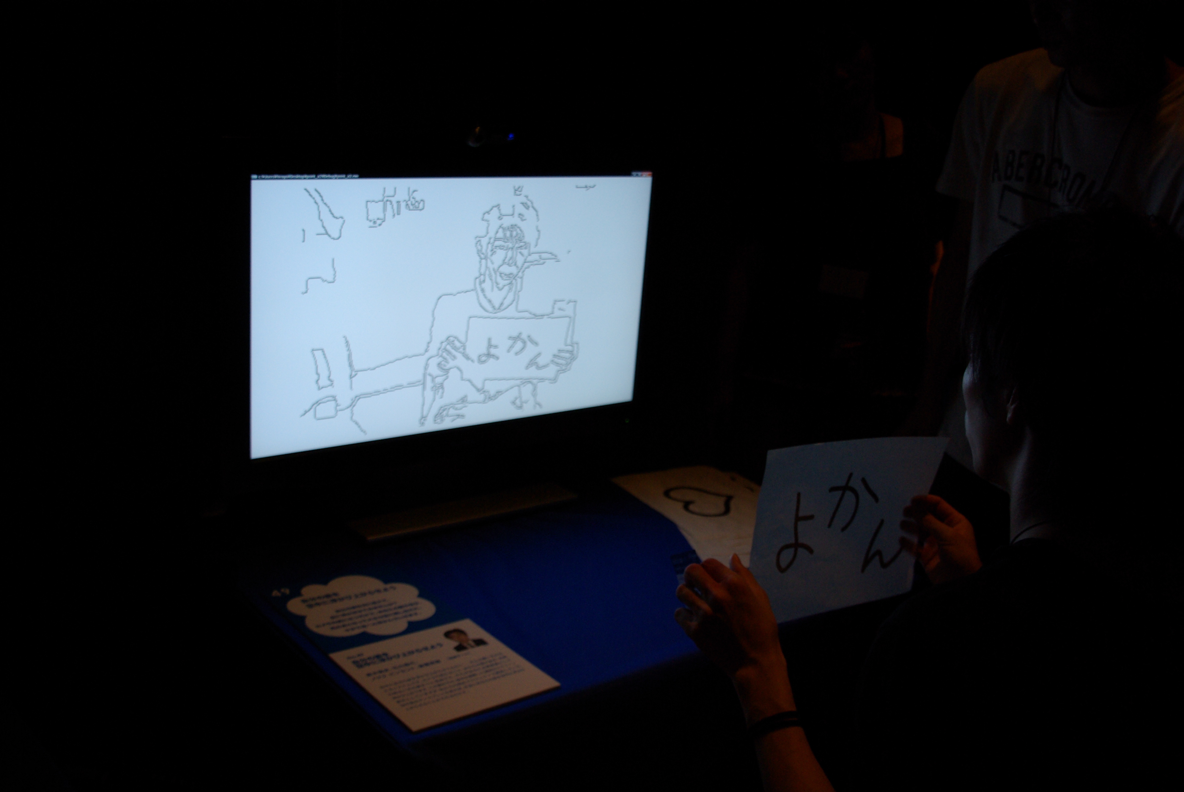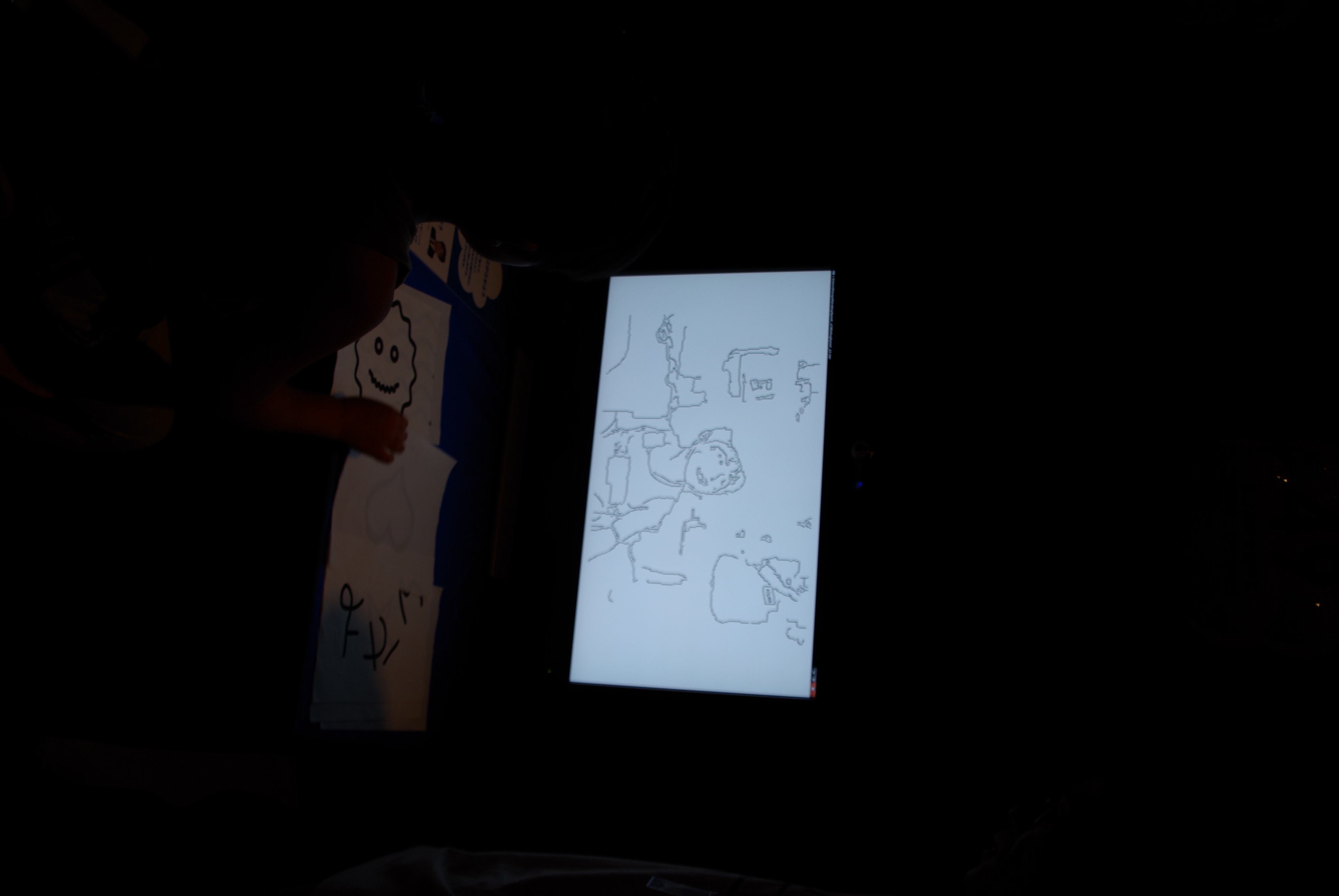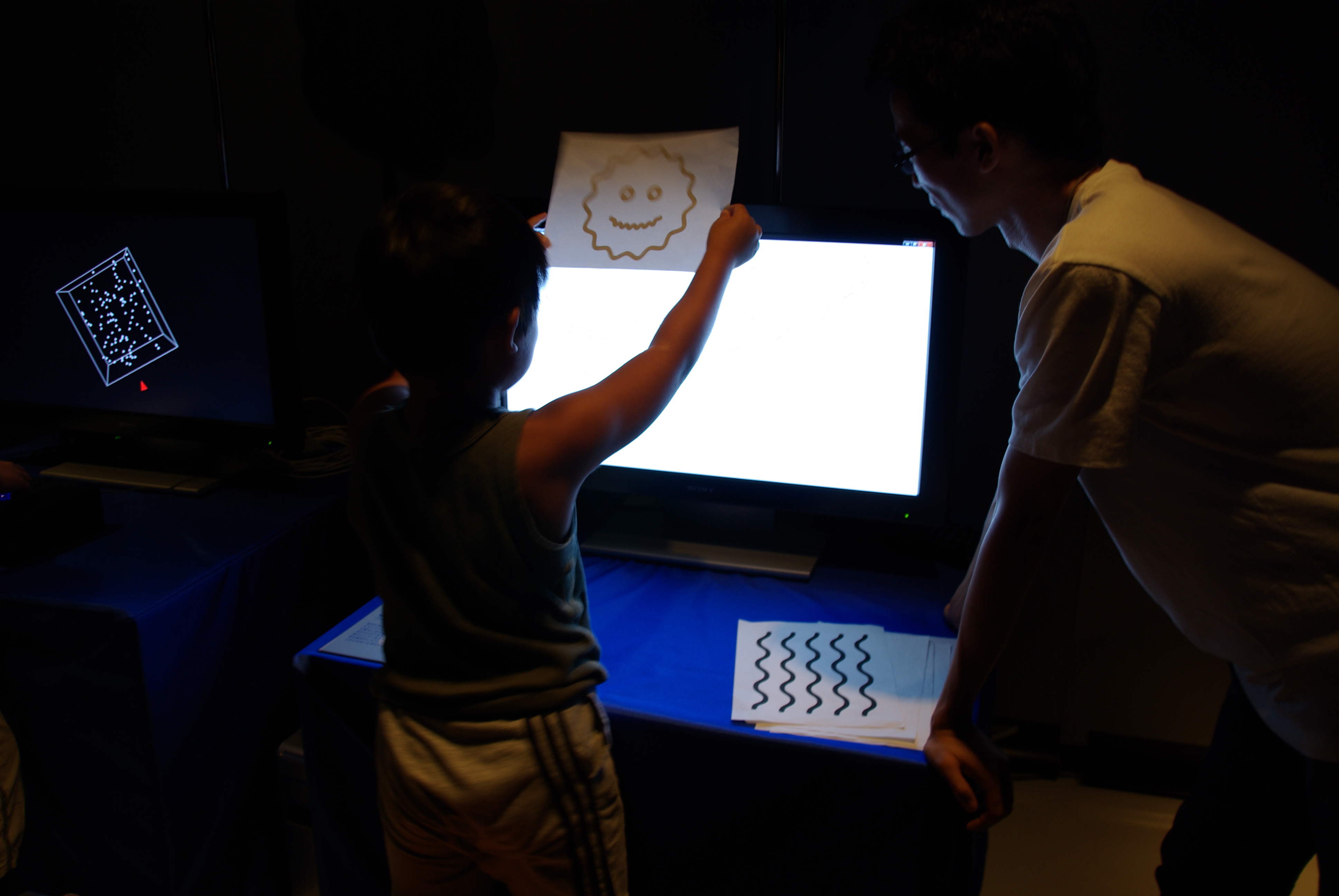 カメラの前に立つだけで、あなたの顔や体が、光の点となって大きな空に映し出され、やがて空へと浮かんでいきます。