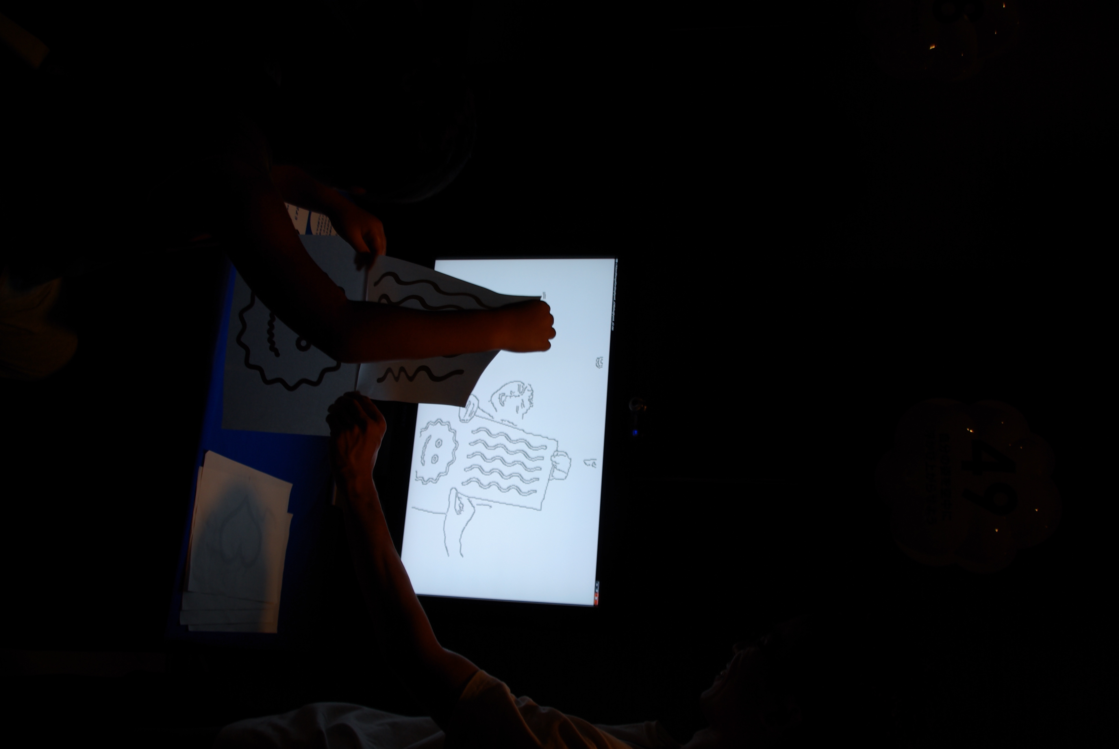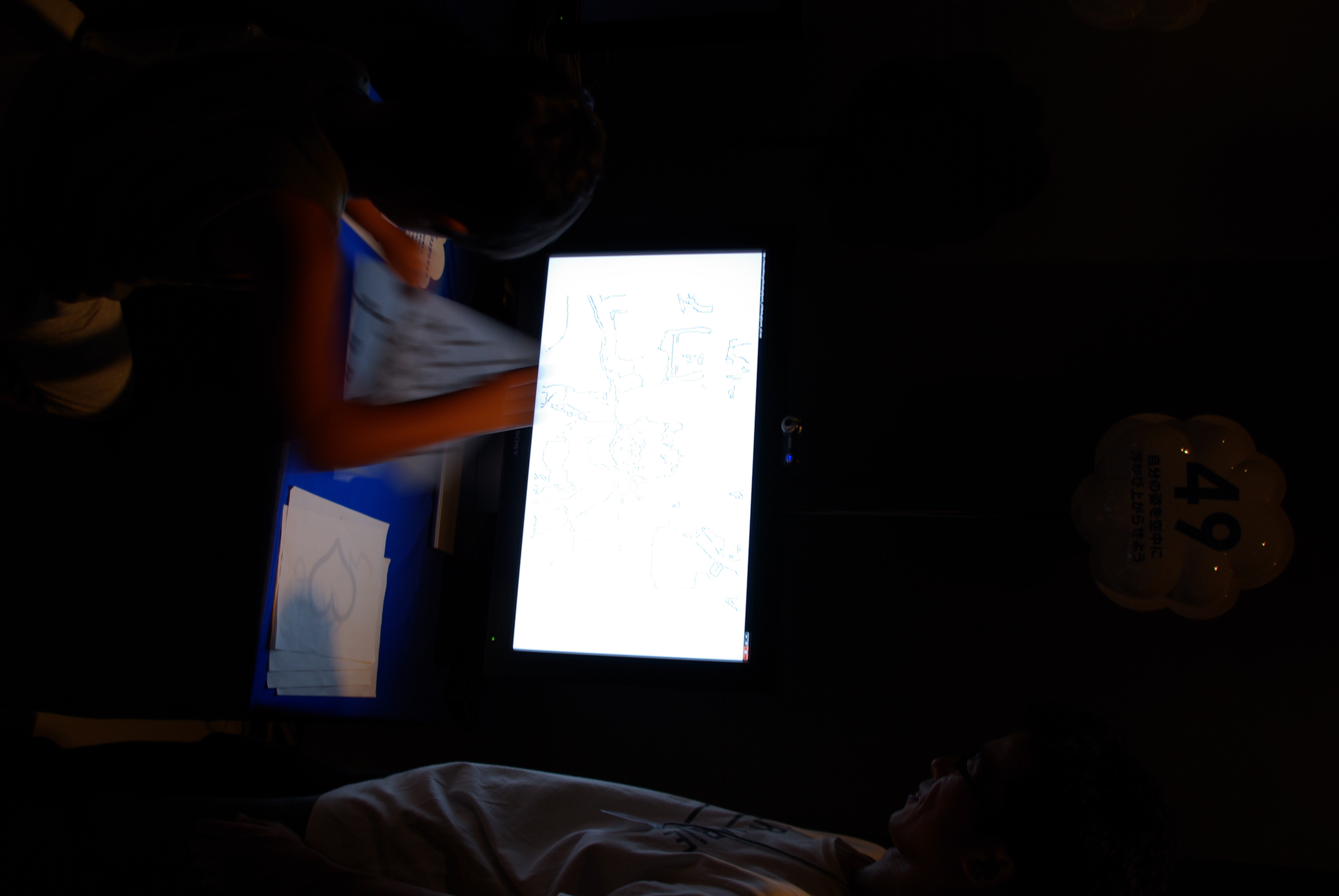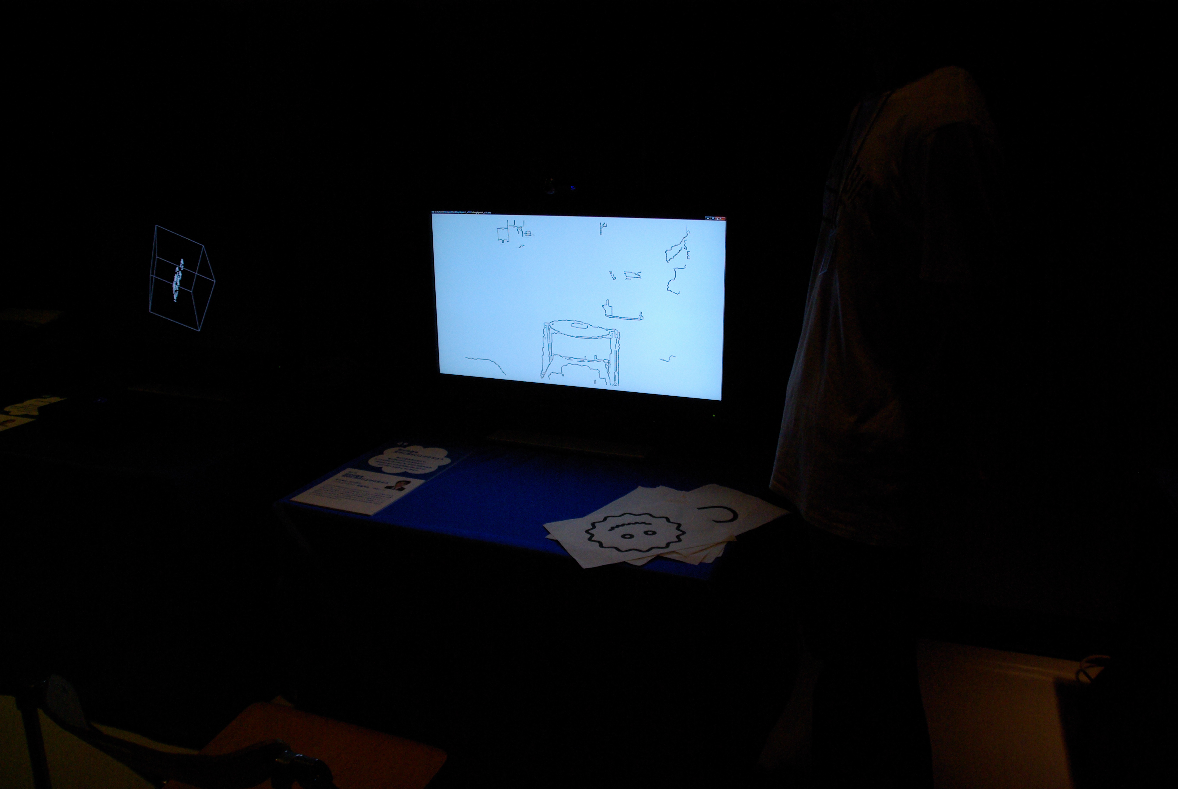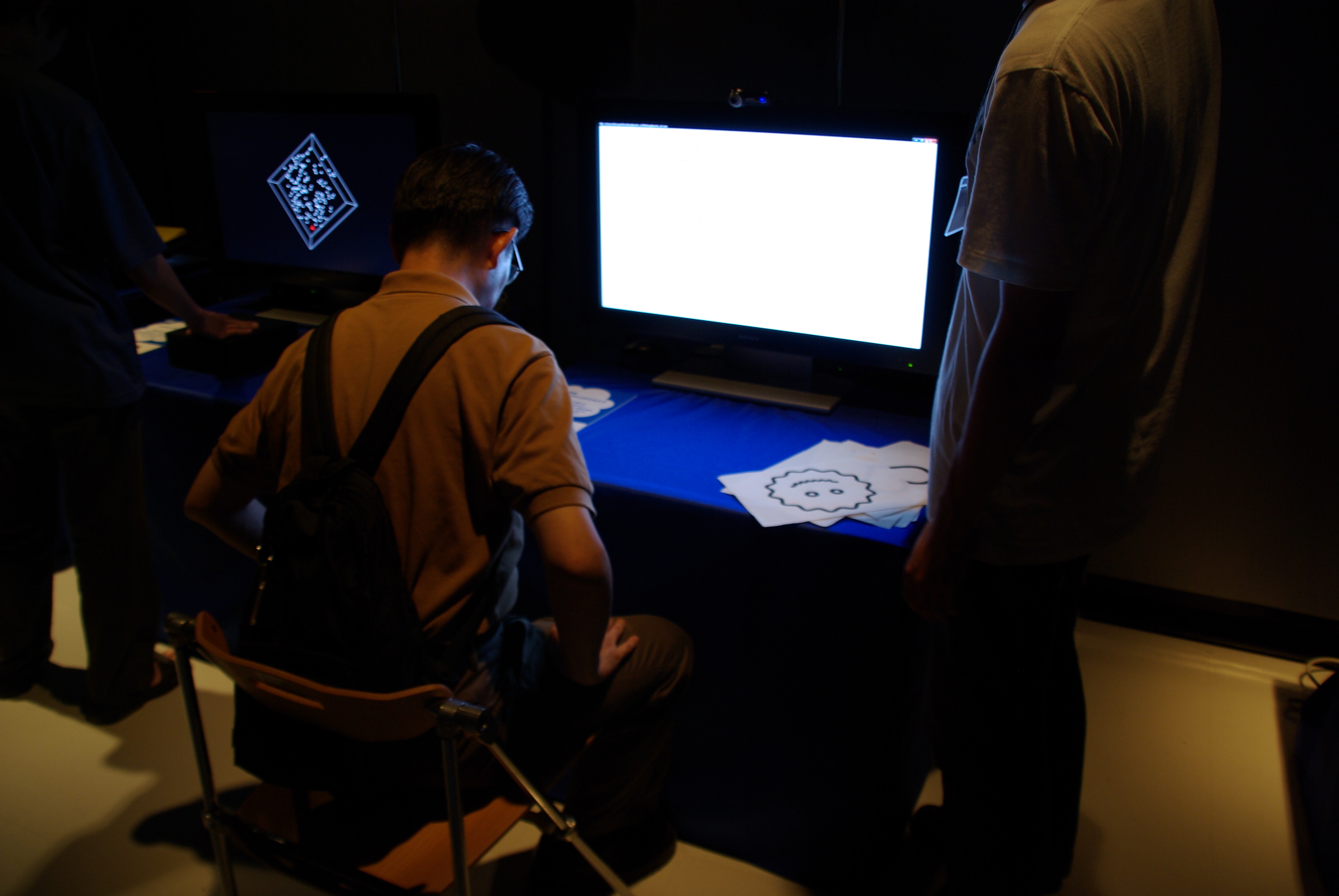 カメラの前に立つだけで、あなたの顔や体が、光の点となって大きな空に映し出され、やがて空へと浮かんでいきます。