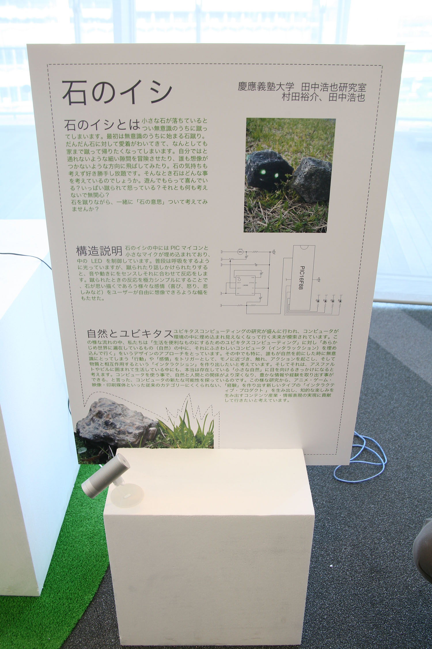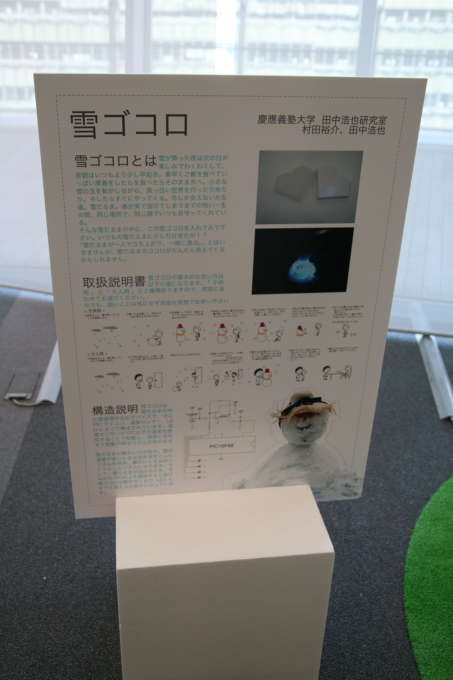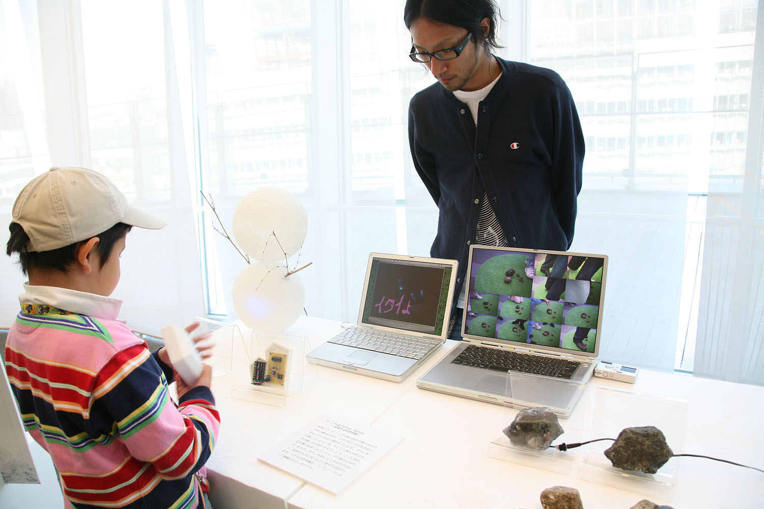 石や雪だるまに 少しだけコンピュータの力を 与えてみました。 といってもボタンや画面は 付いていません。 あくまでも石であり 雪だるまなのです。