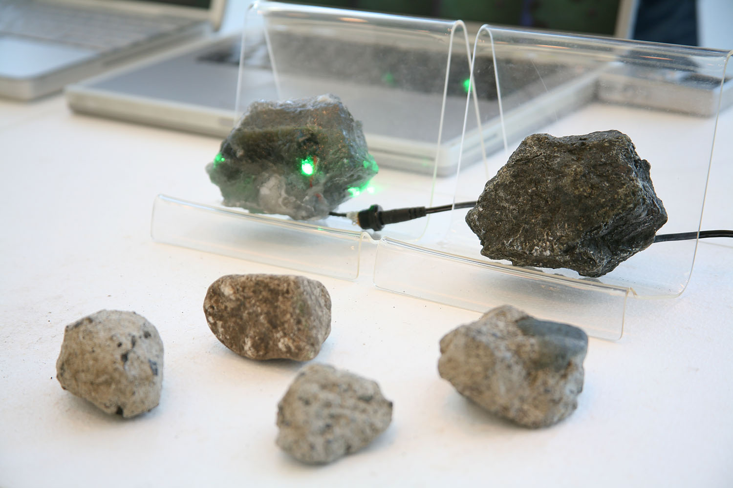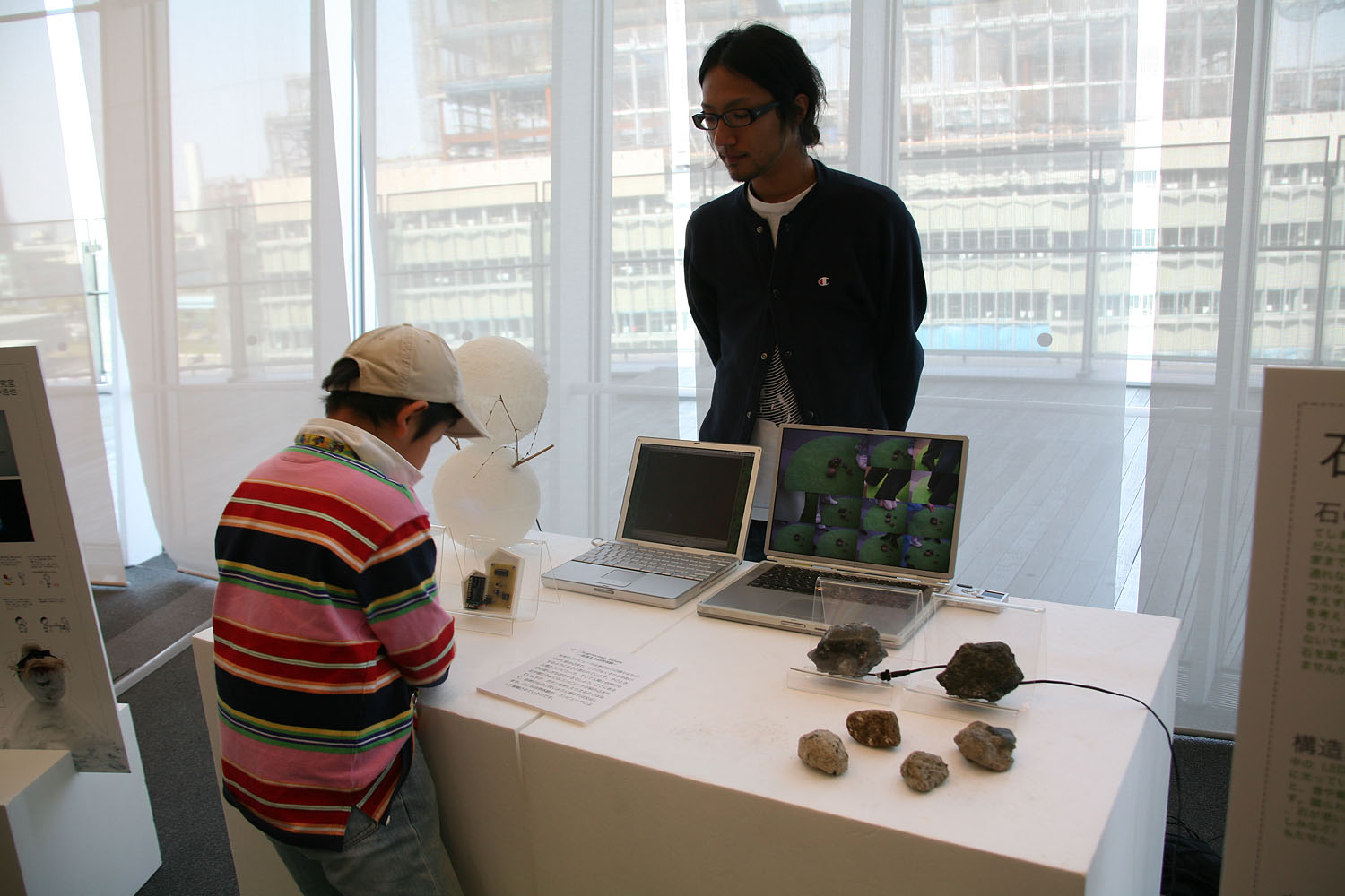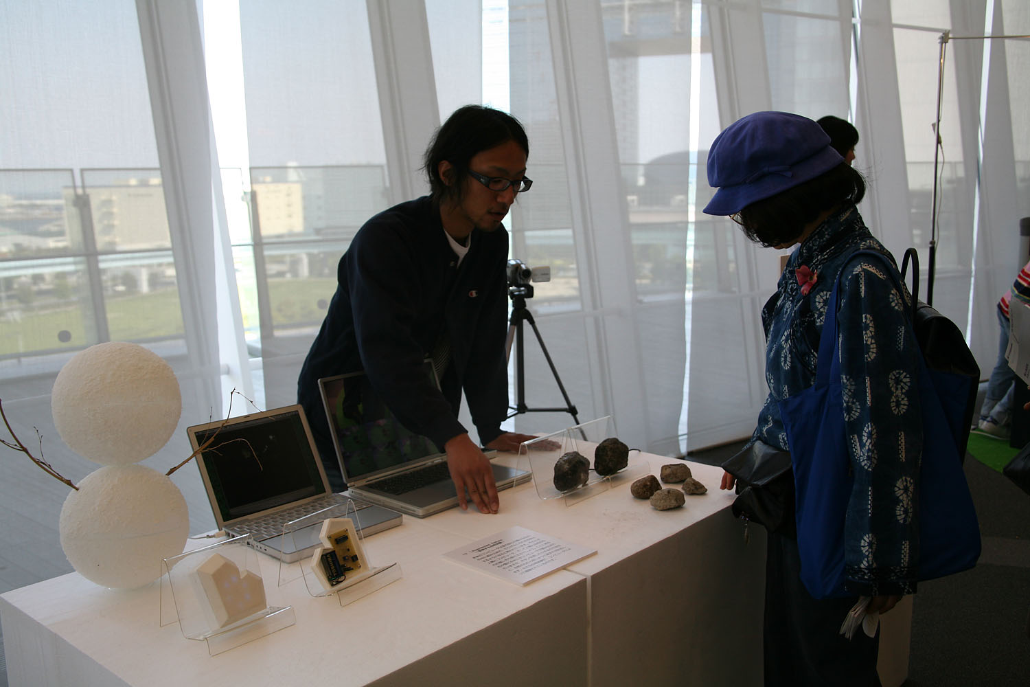 石や雪だるまに 少しだけコンピュータの力を 与えてみました。 といってもボタンや画面は 付いていません。 あくまでも石であり 雪だるまなのです。