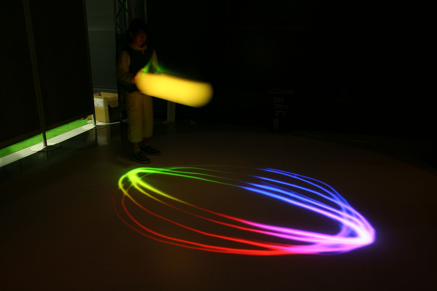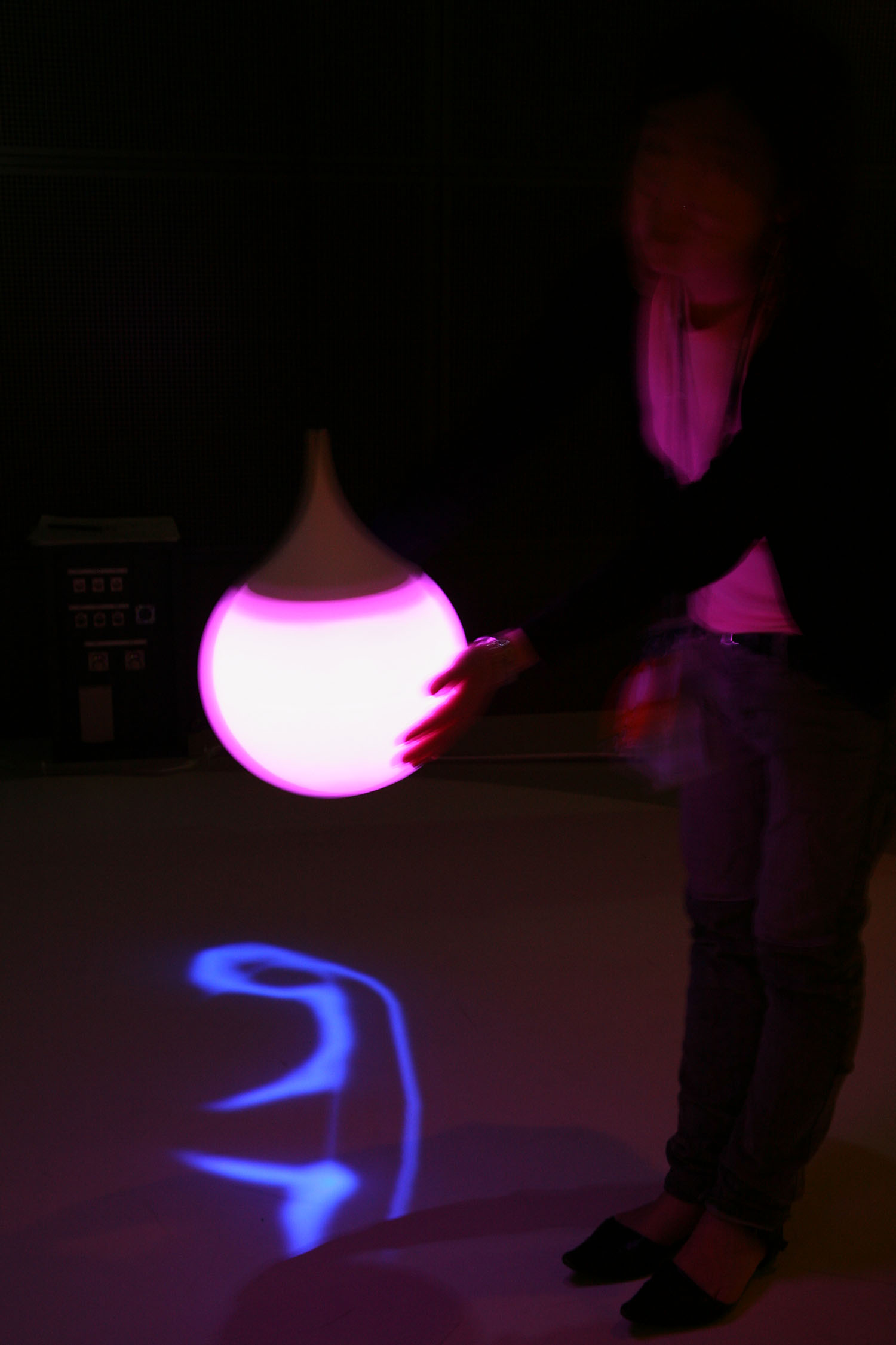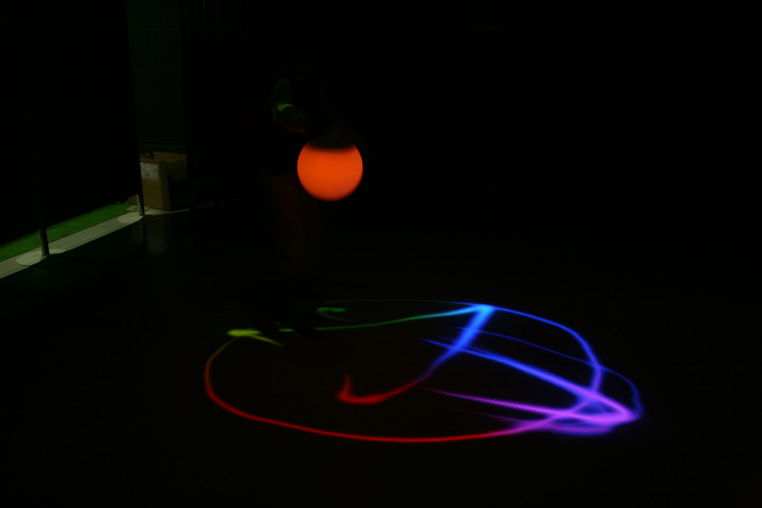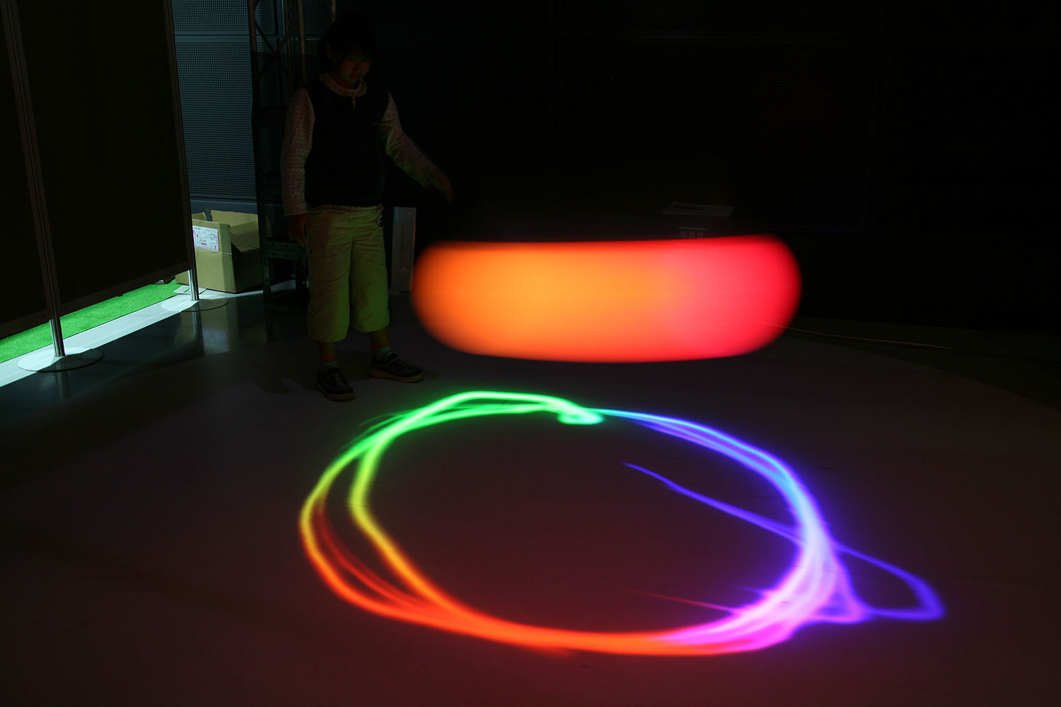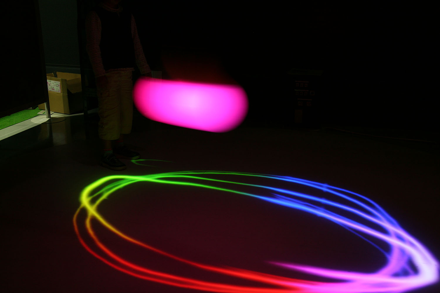 様々な色に変化する光の振り子を