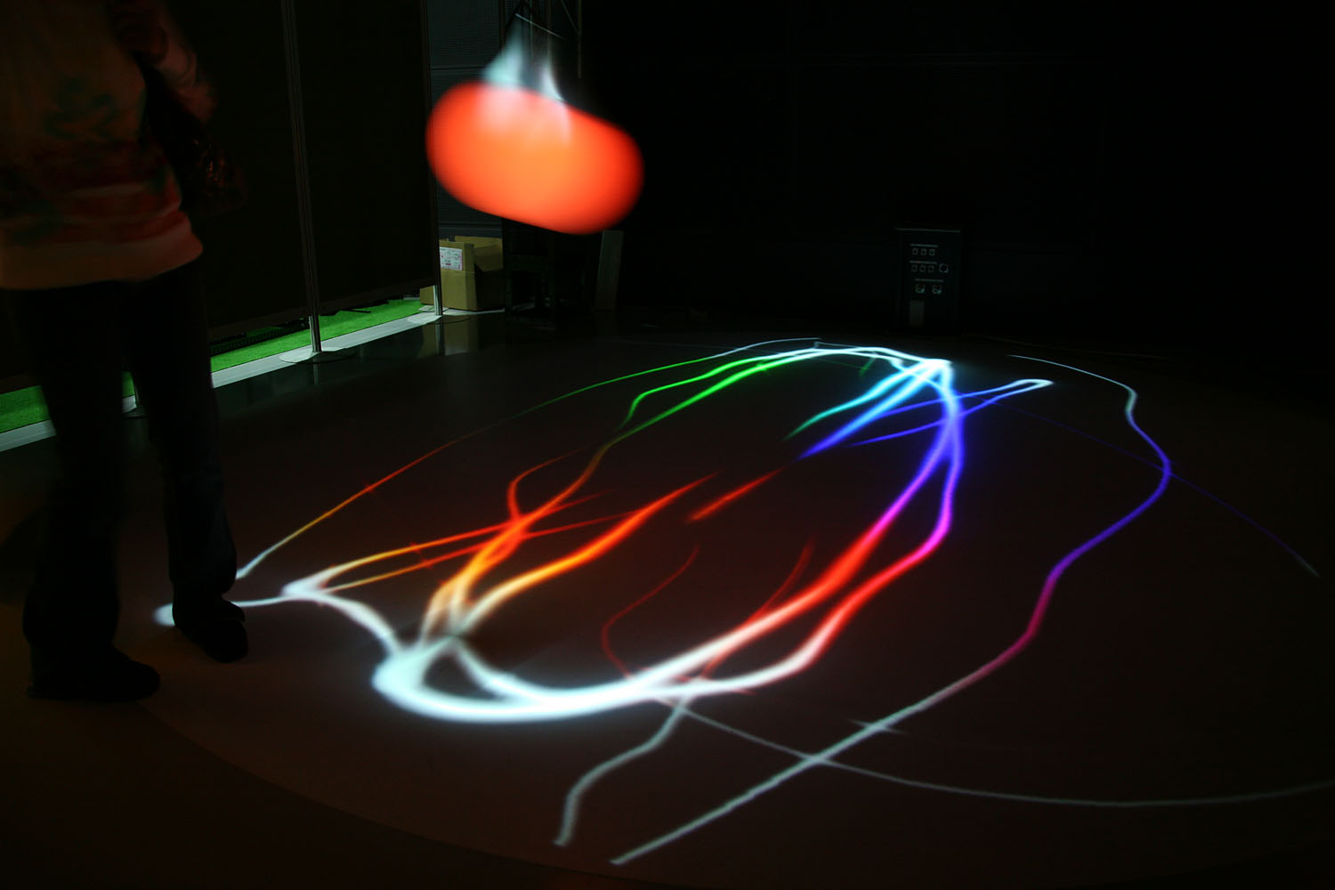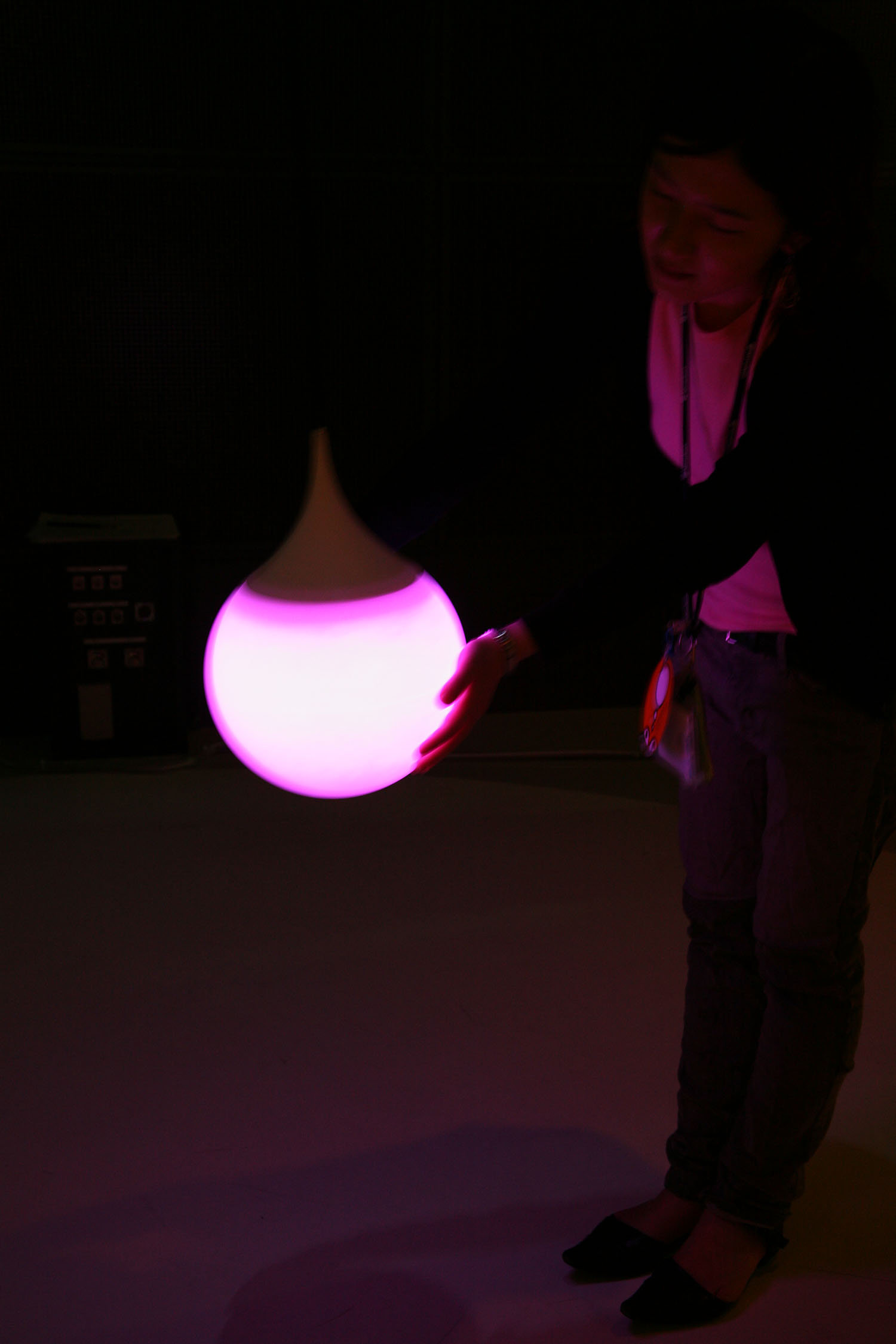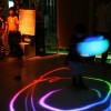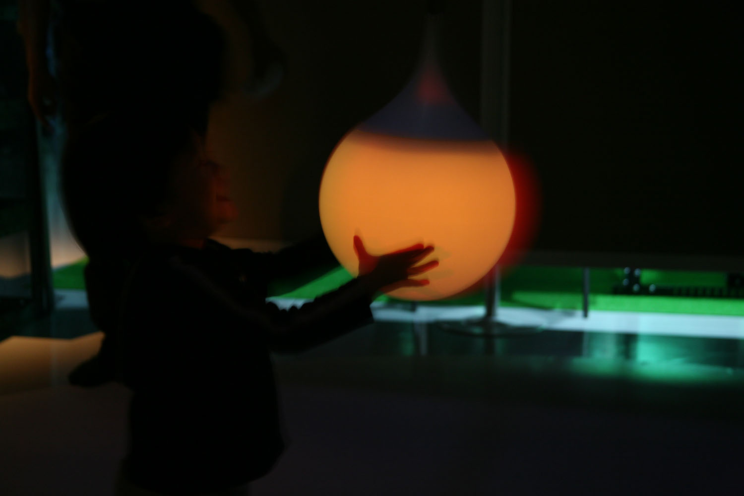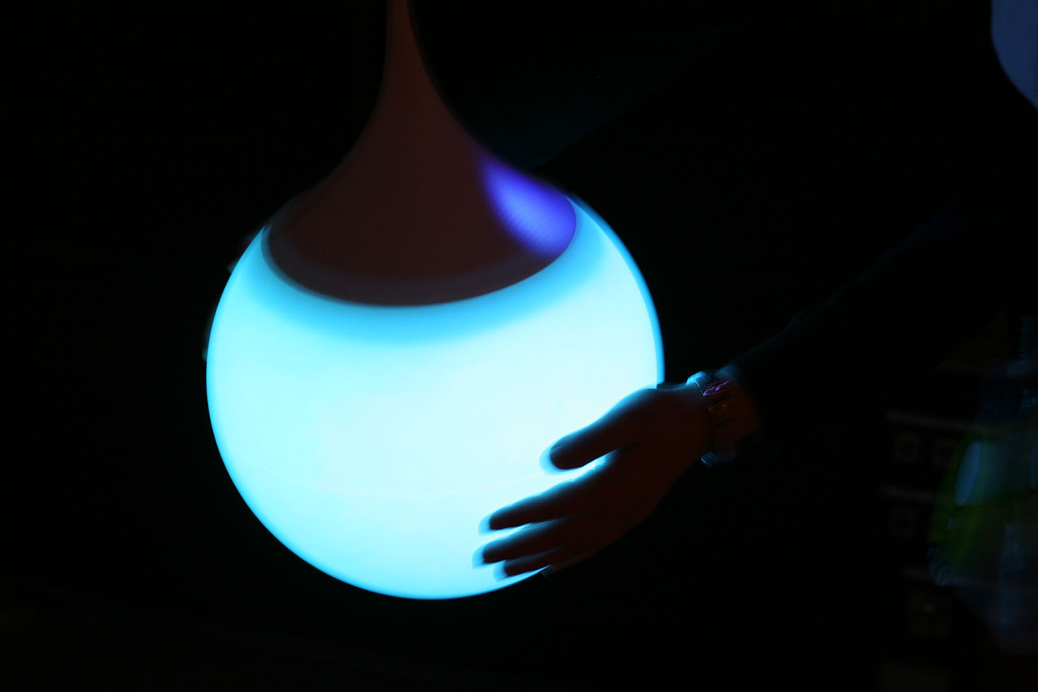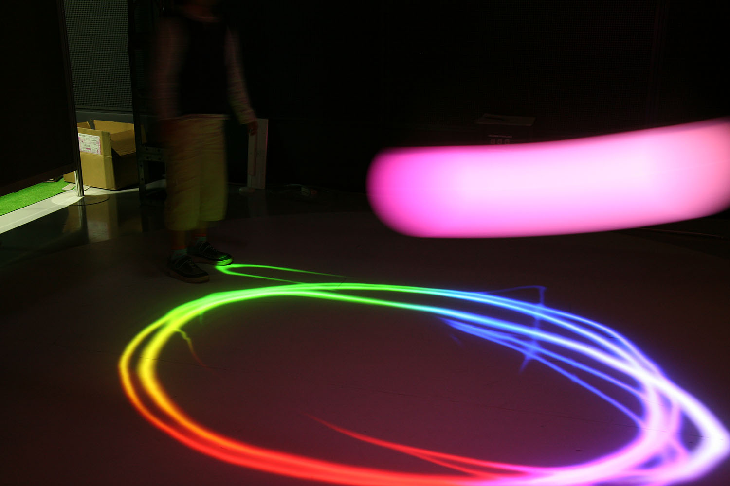 様々な色に変化する光の振り子を