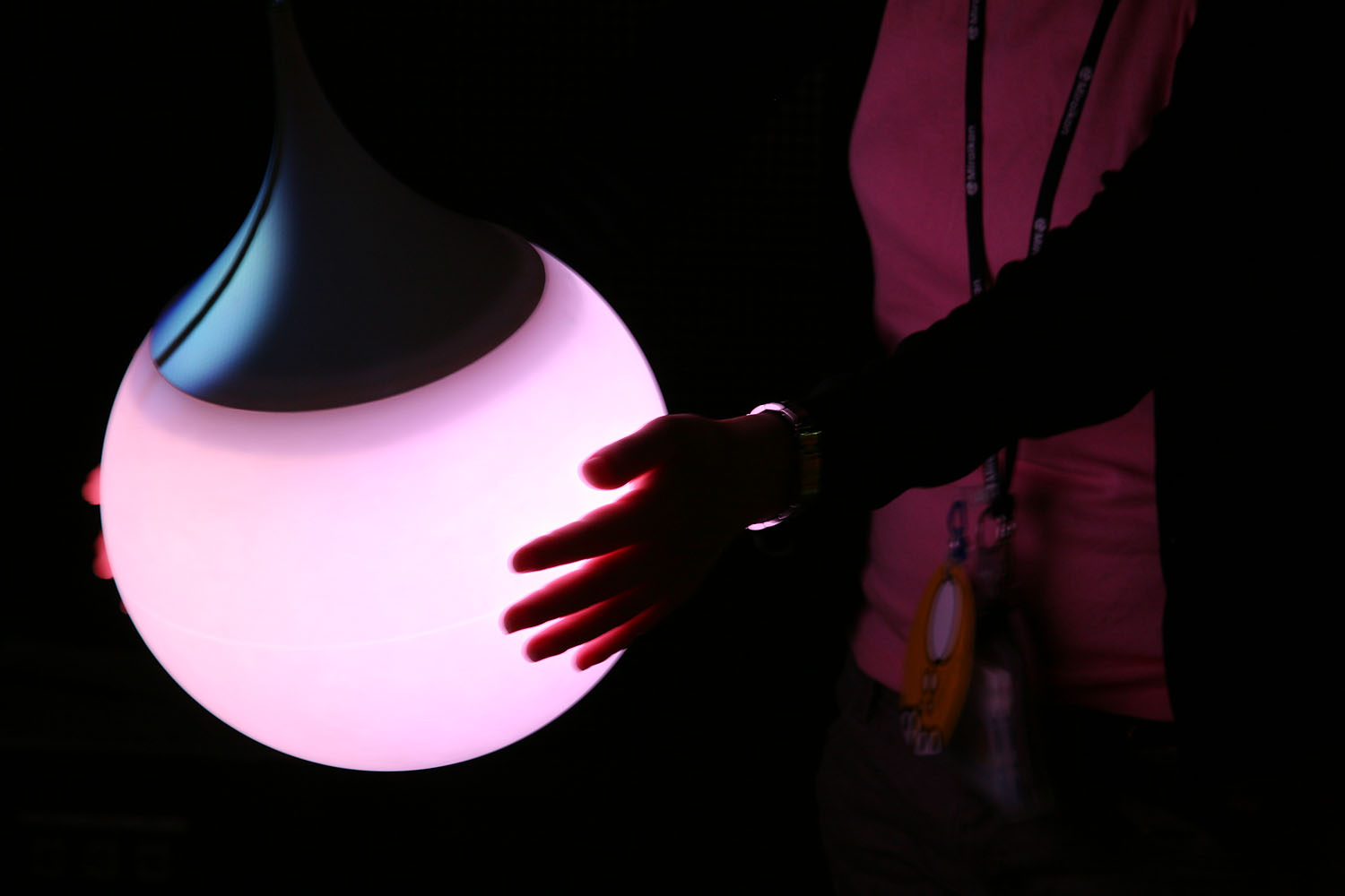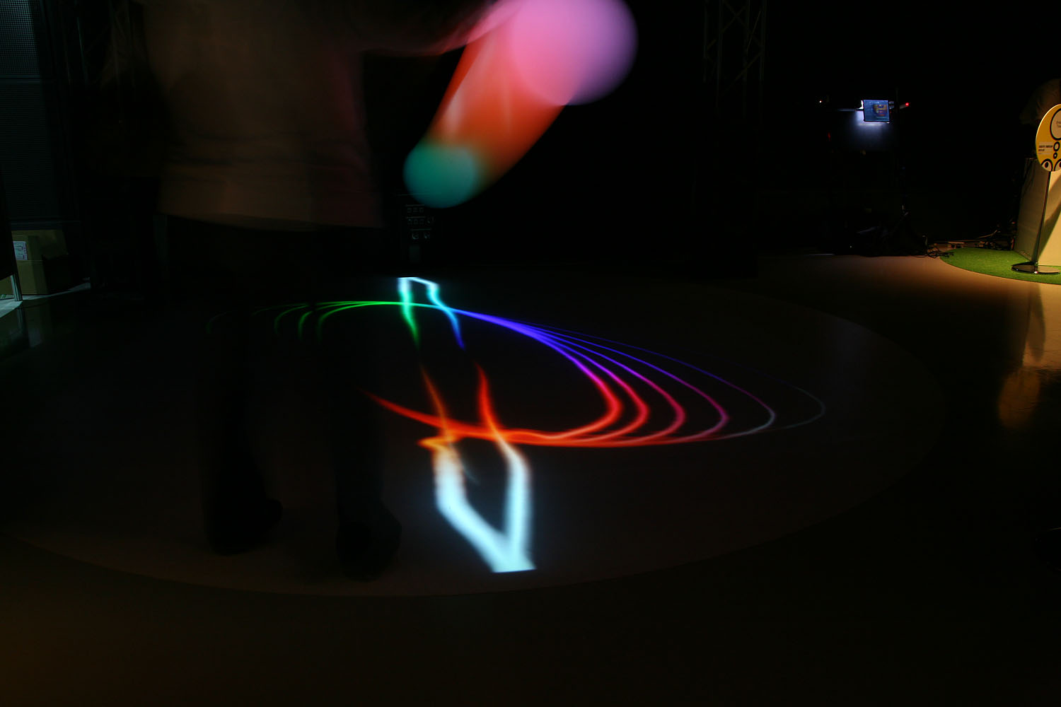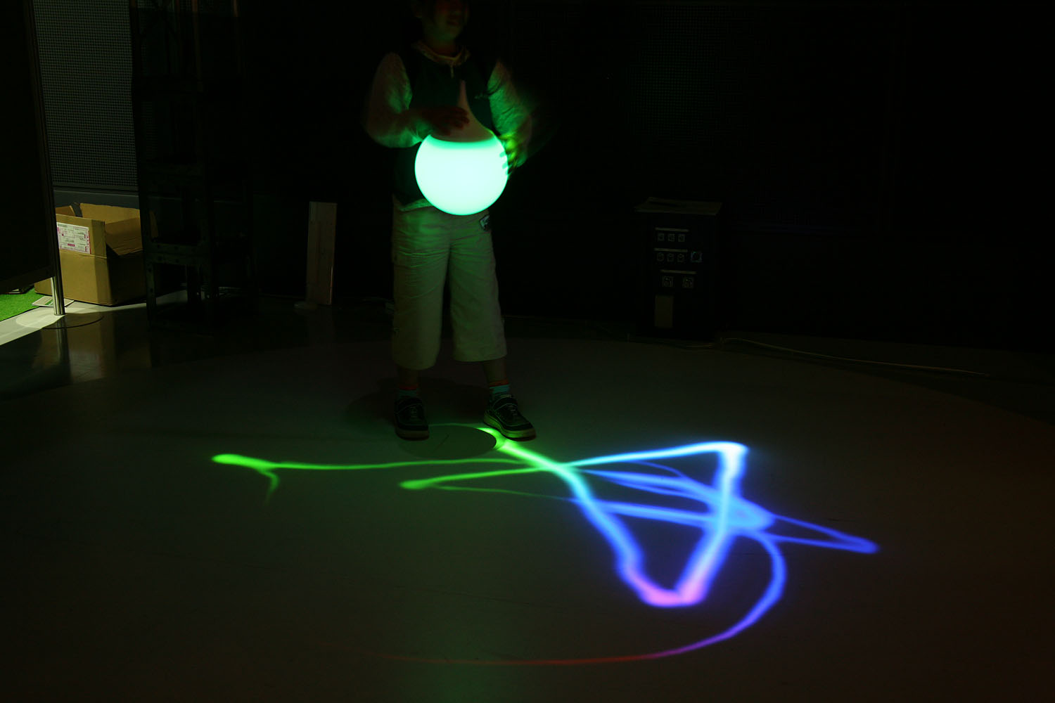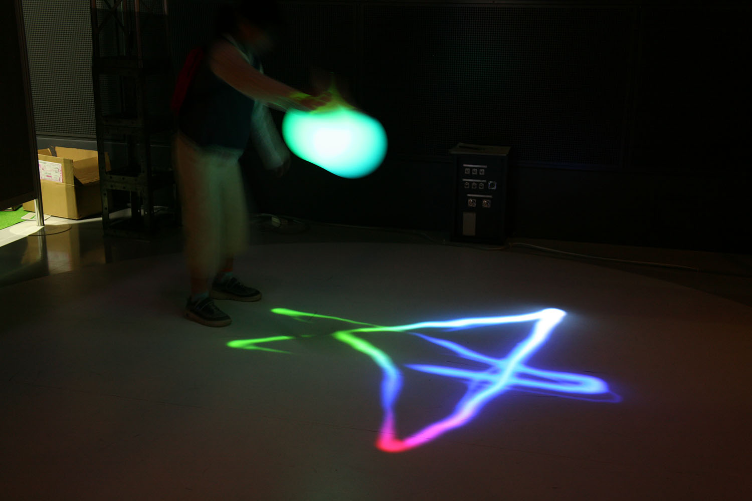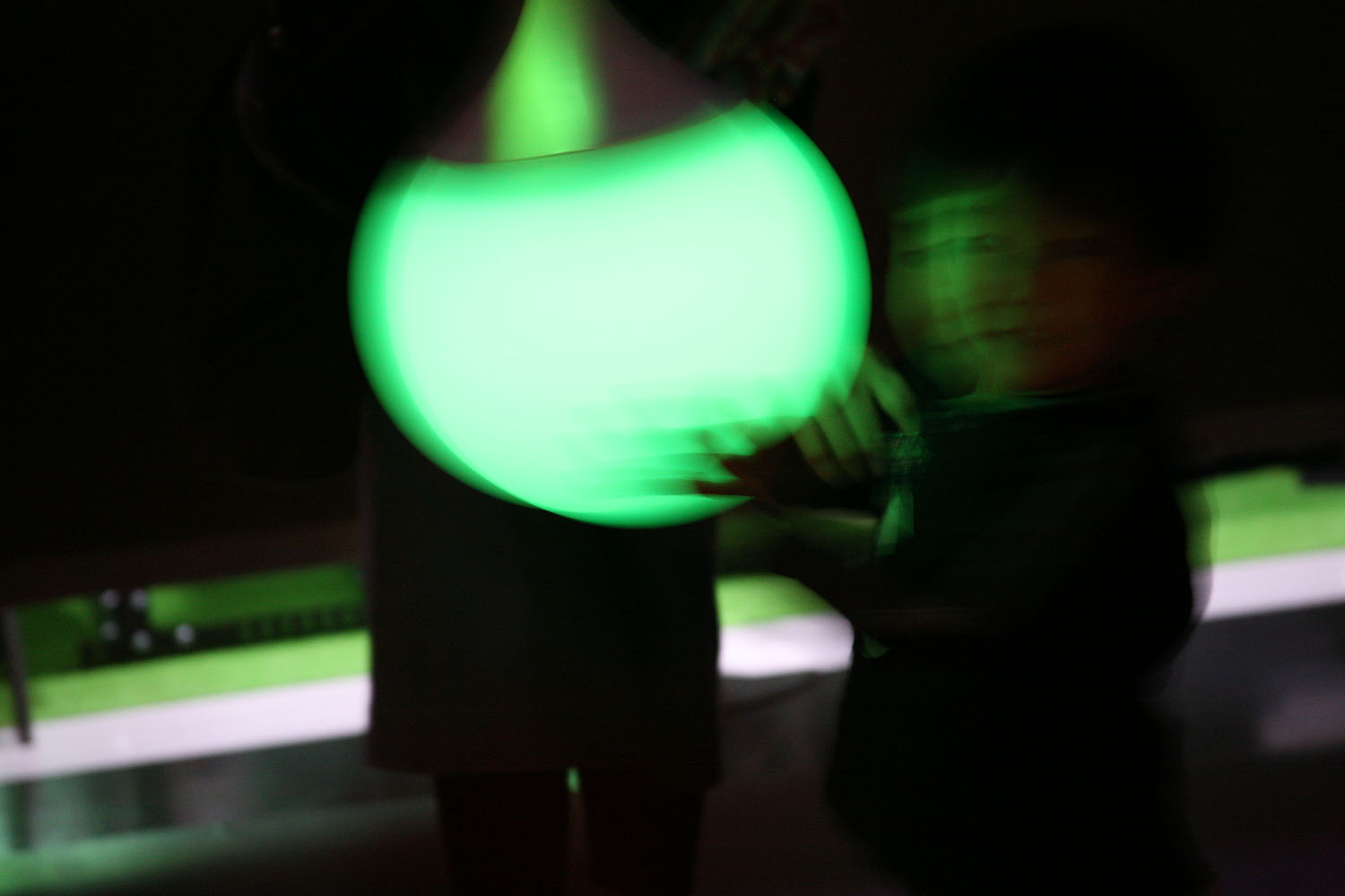 様々な色に変化する光の振り子を