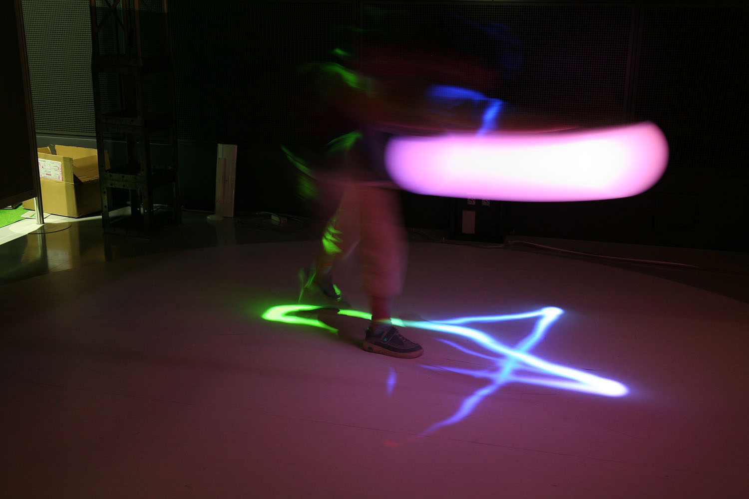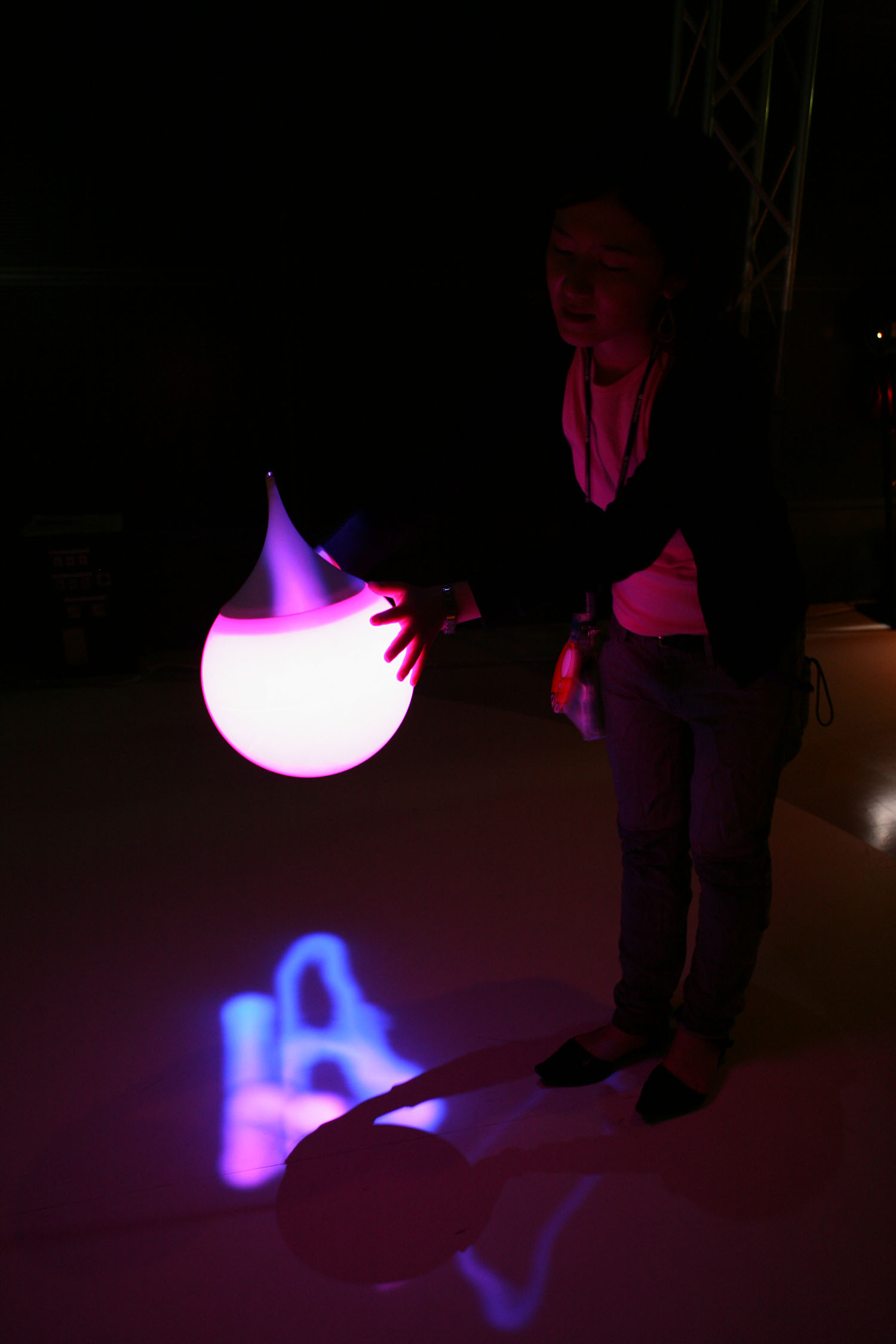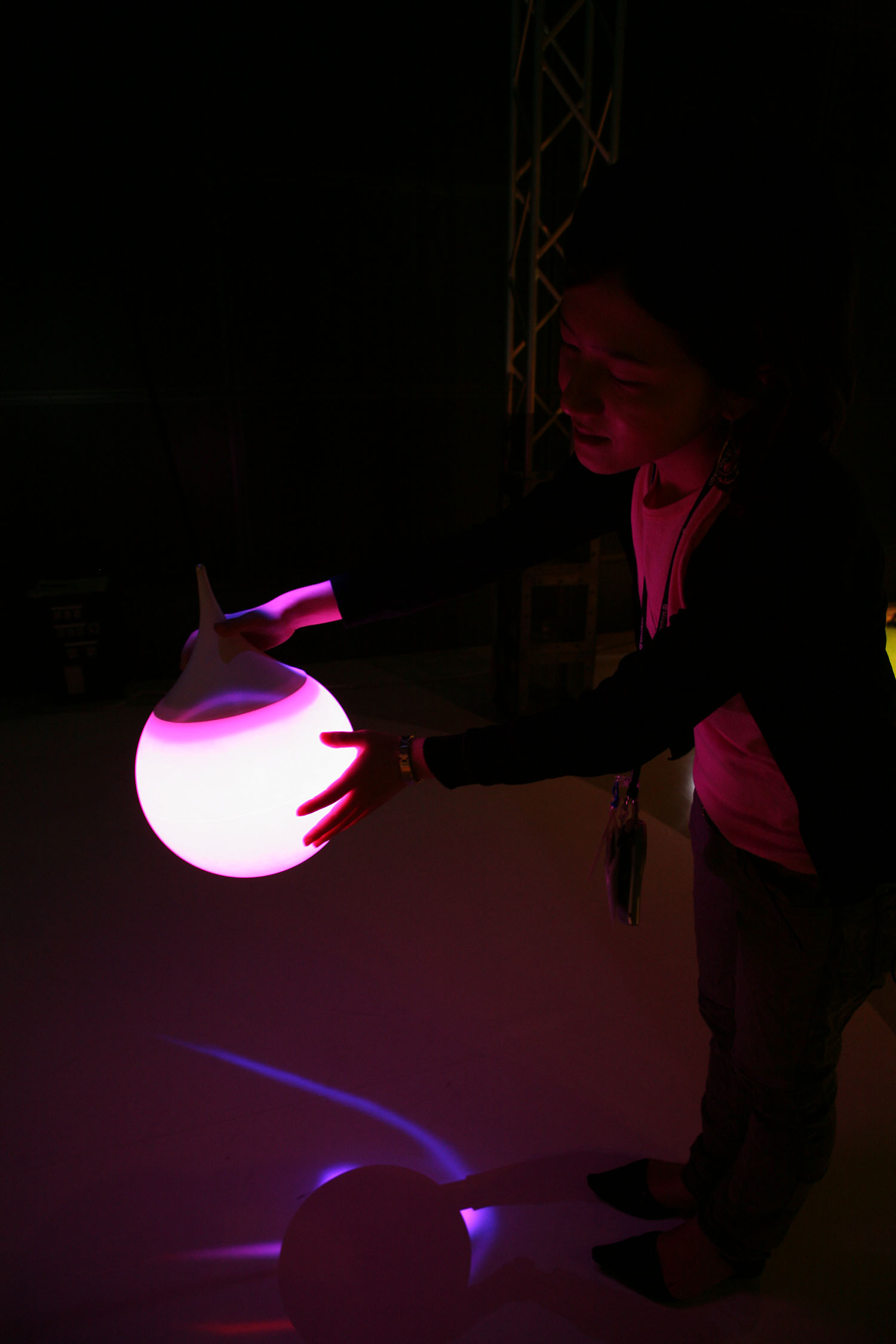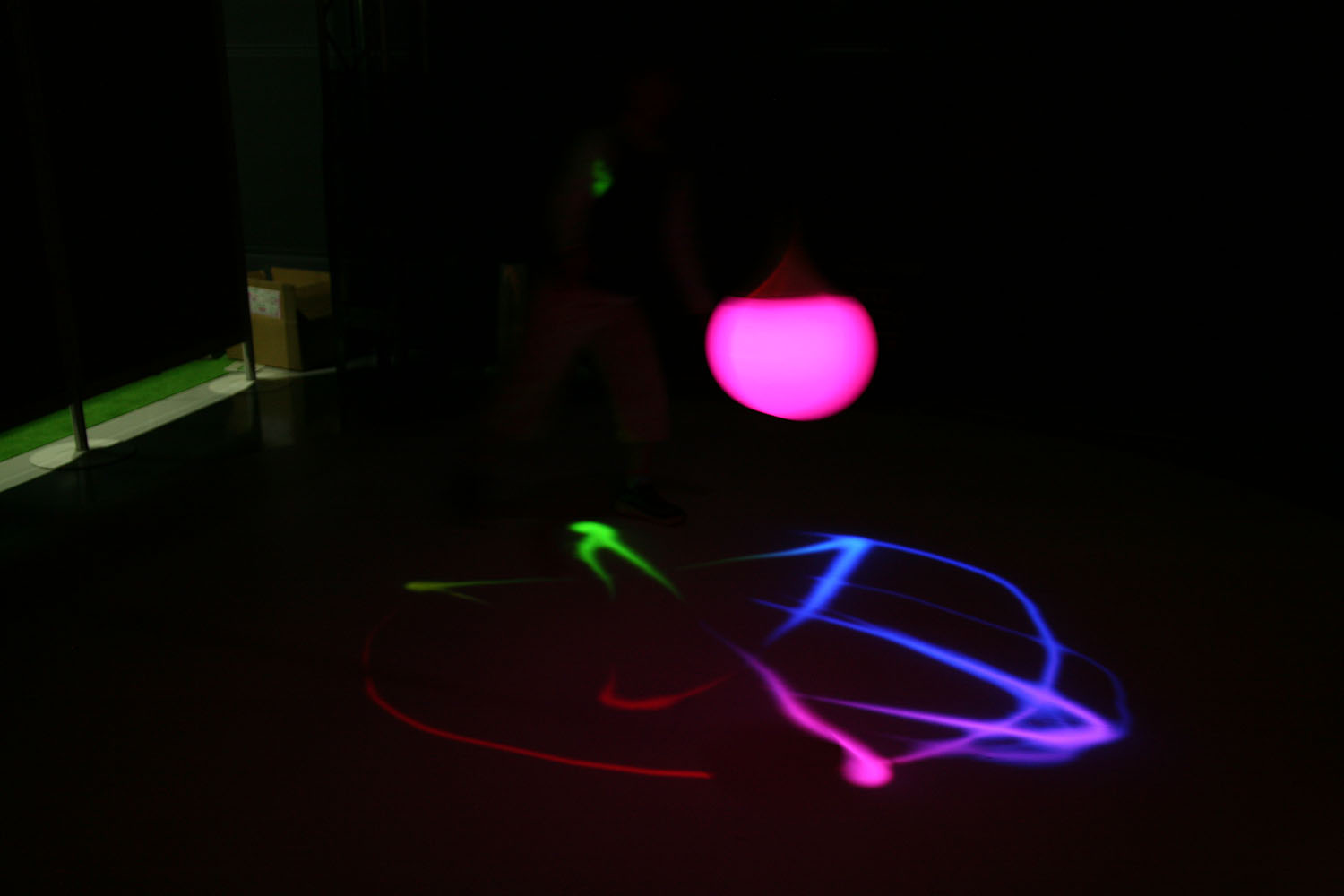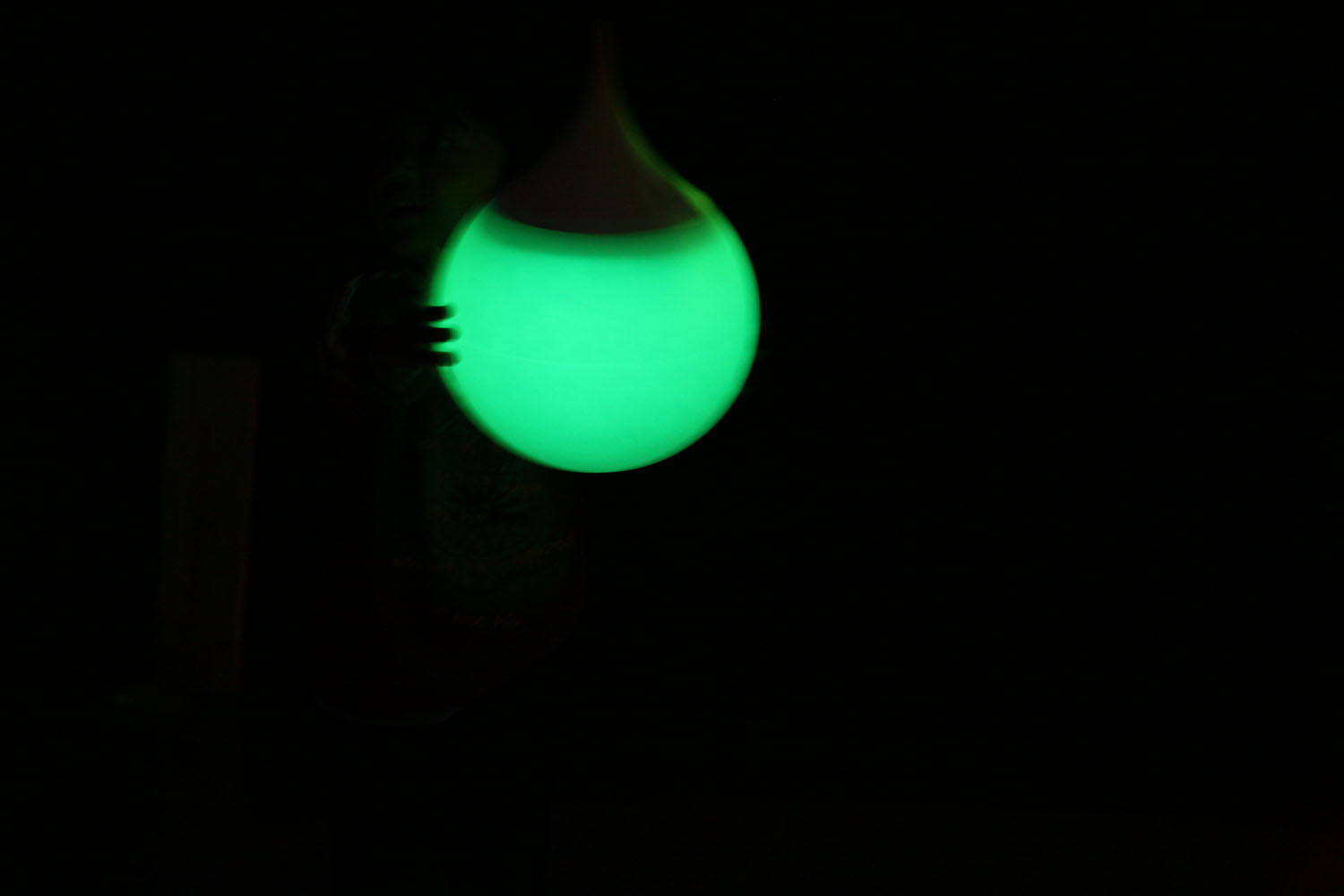 様々な色に変化する光の振り子を