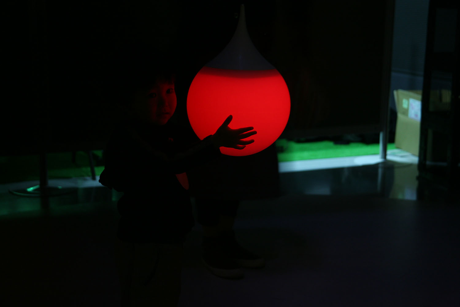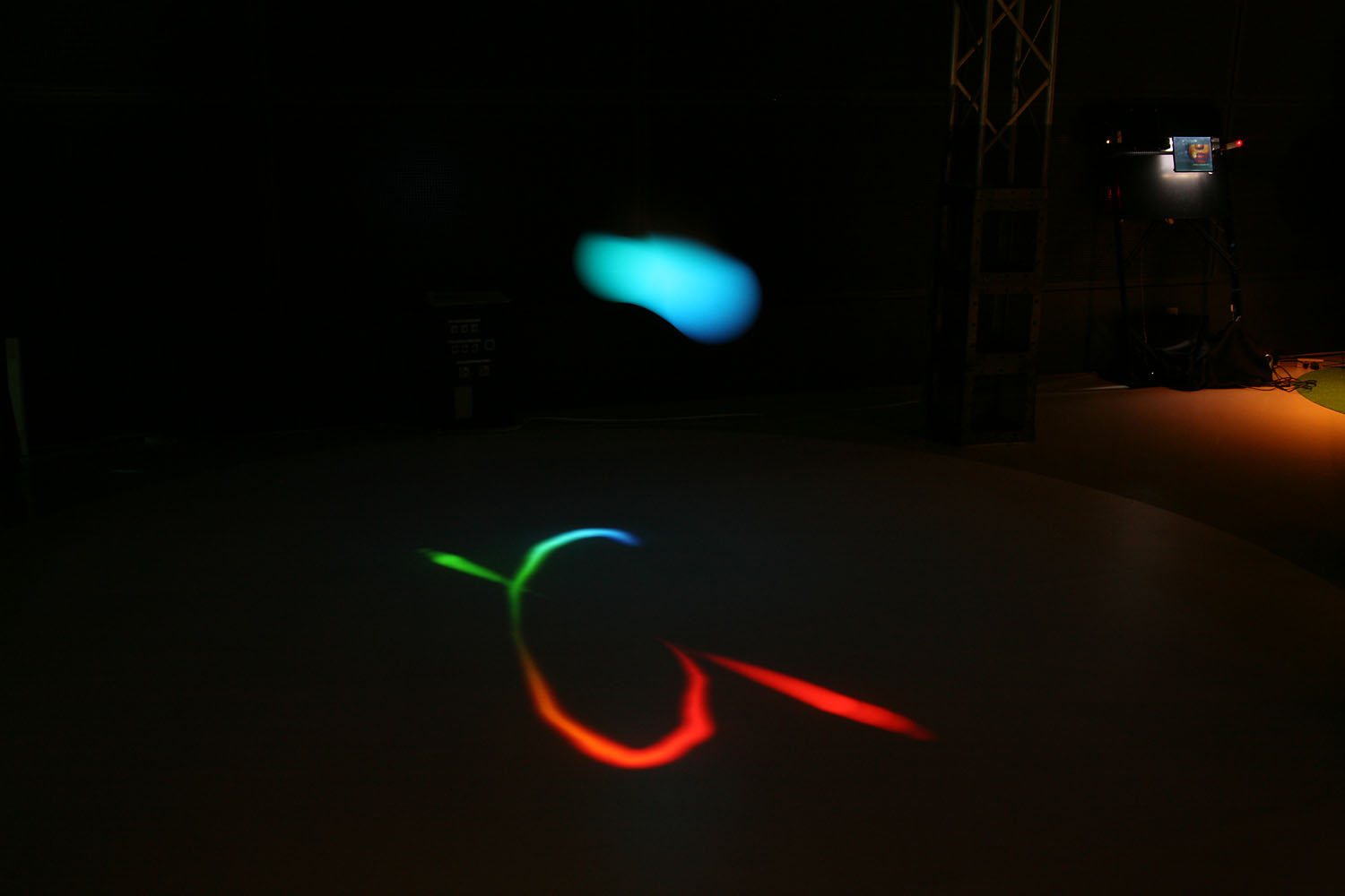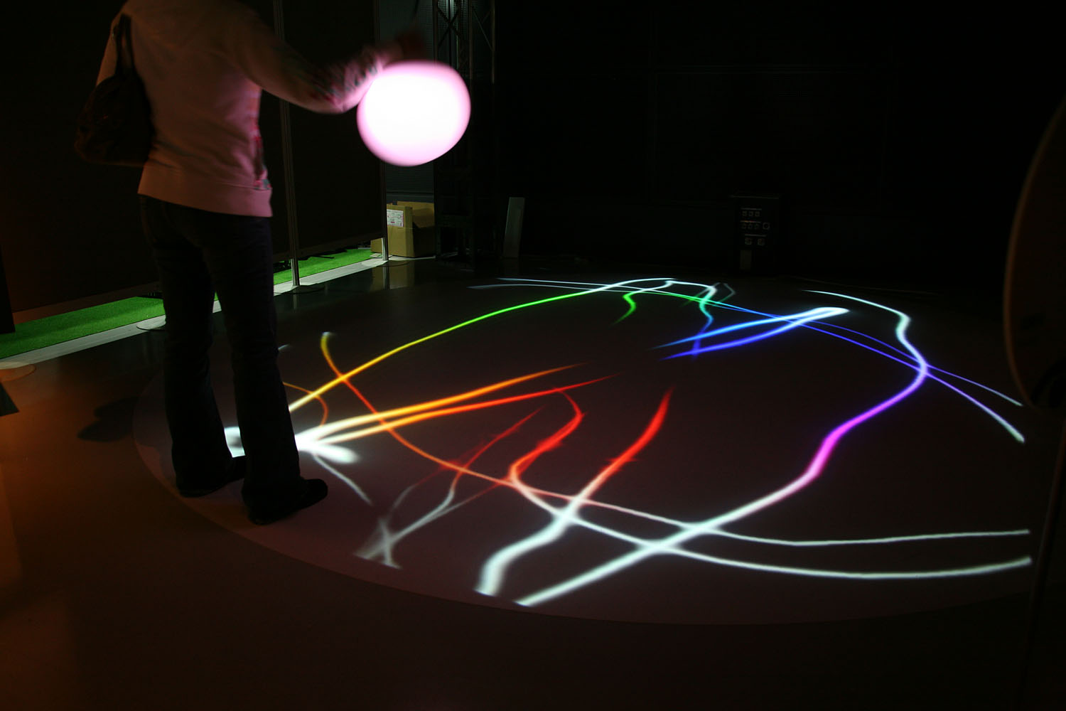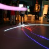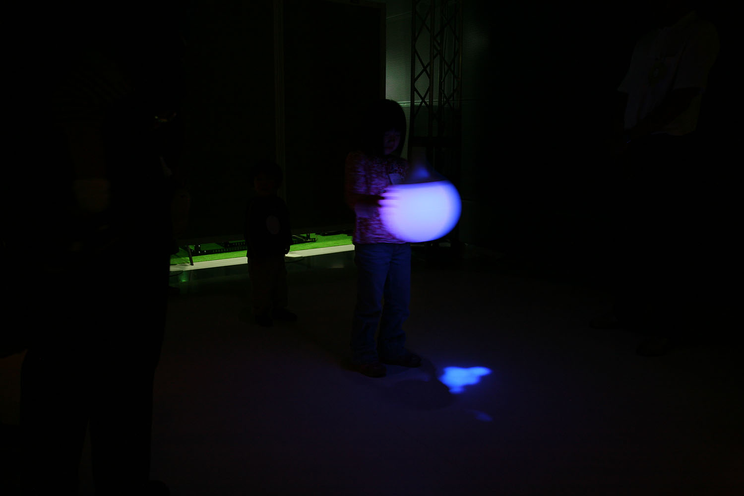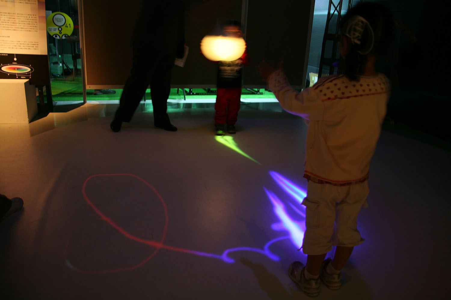 様々な色に変化する光の振り子を