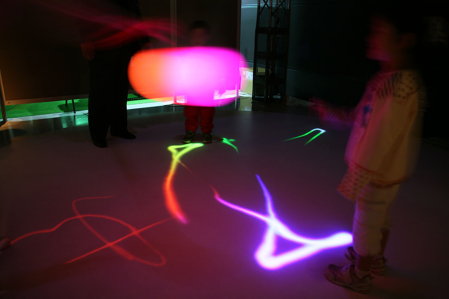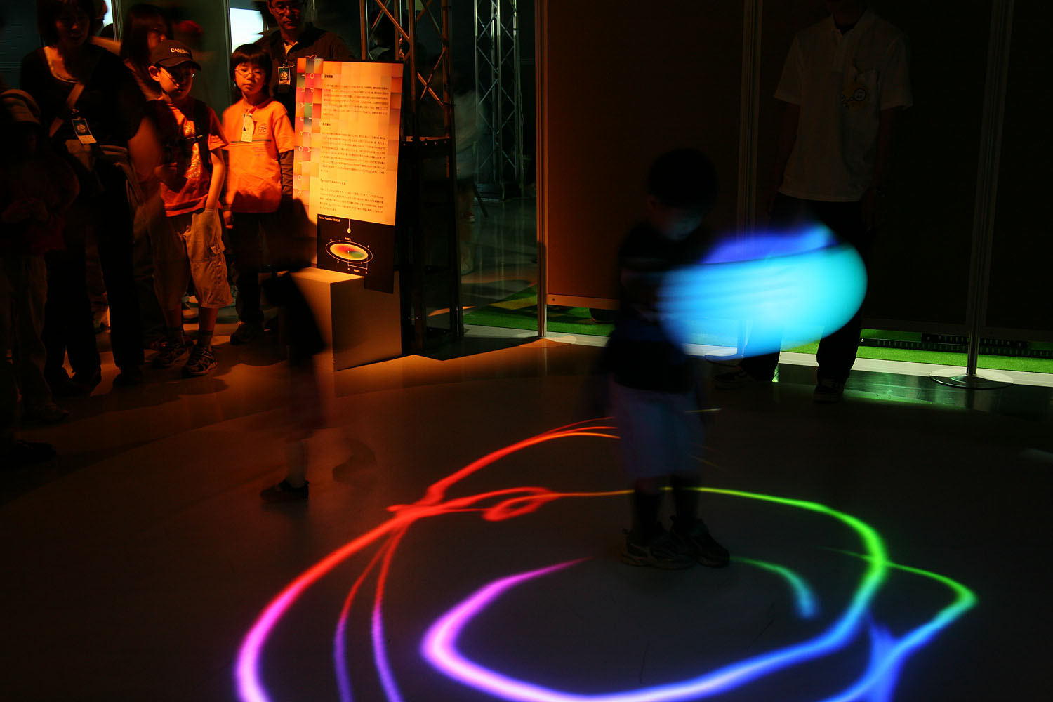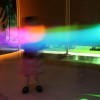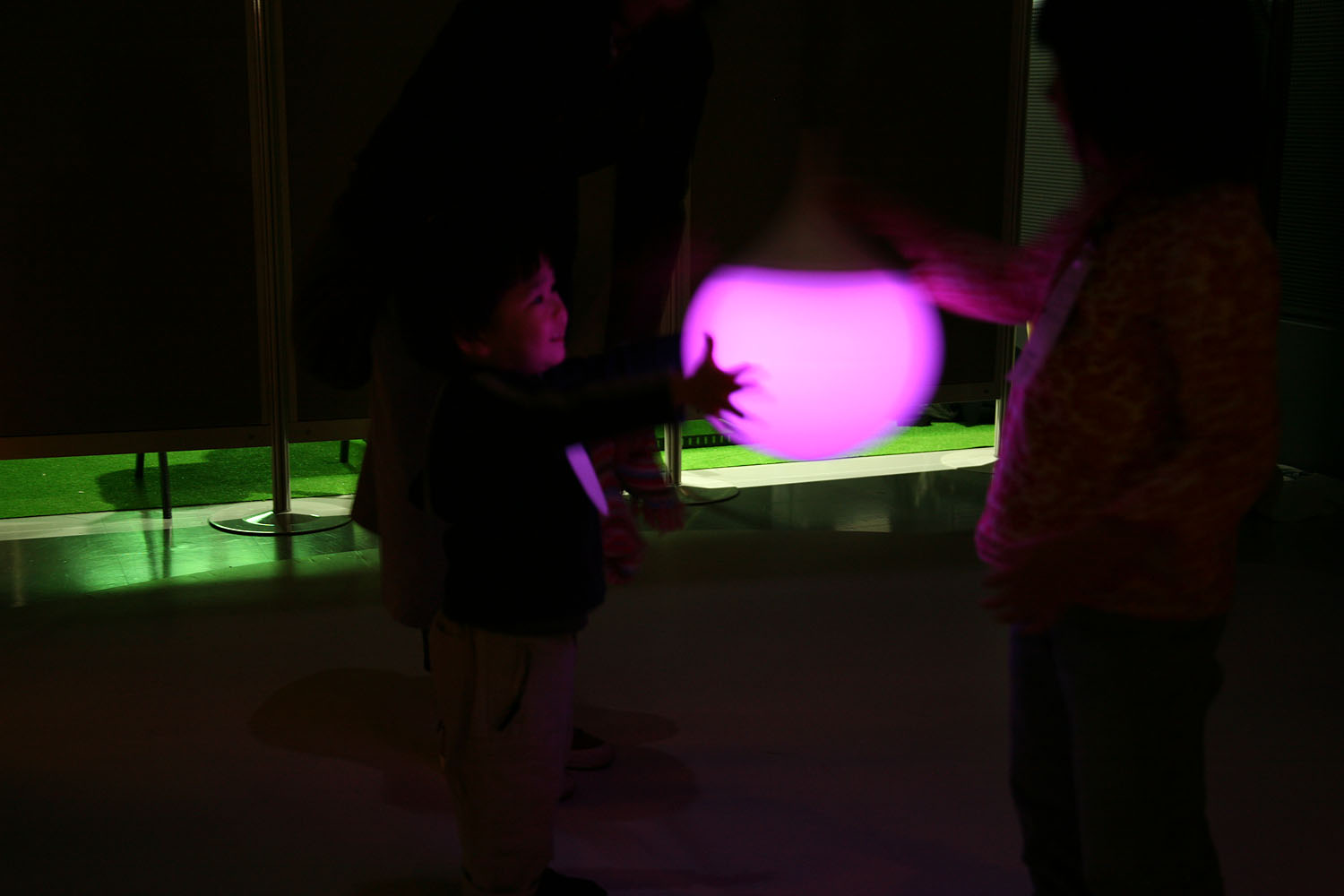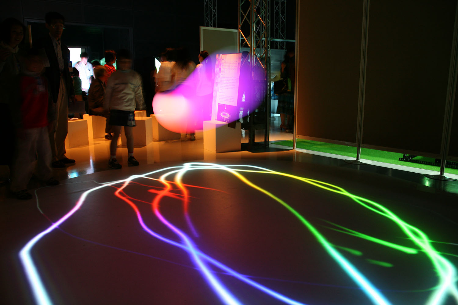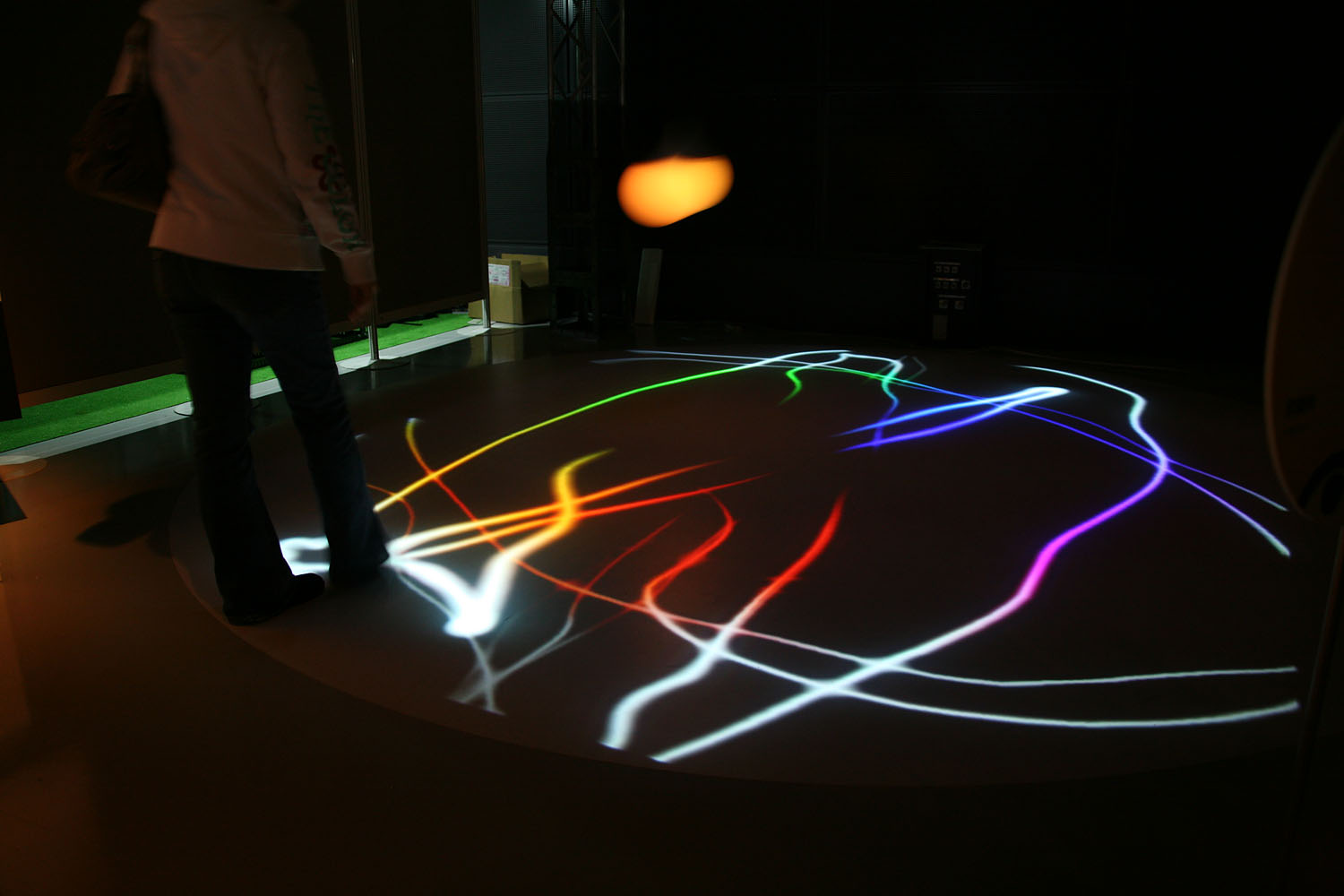 様々な色に変化する光の振り子を