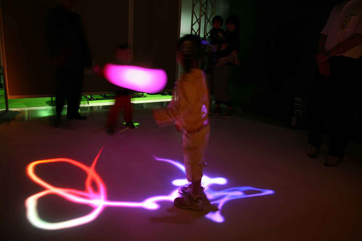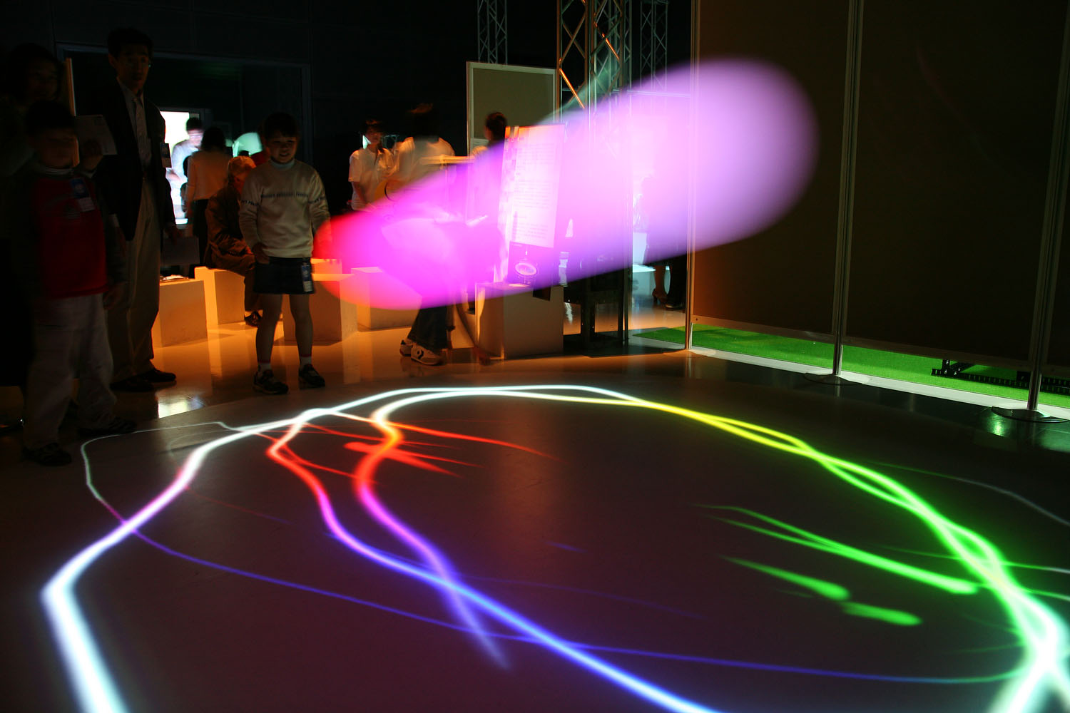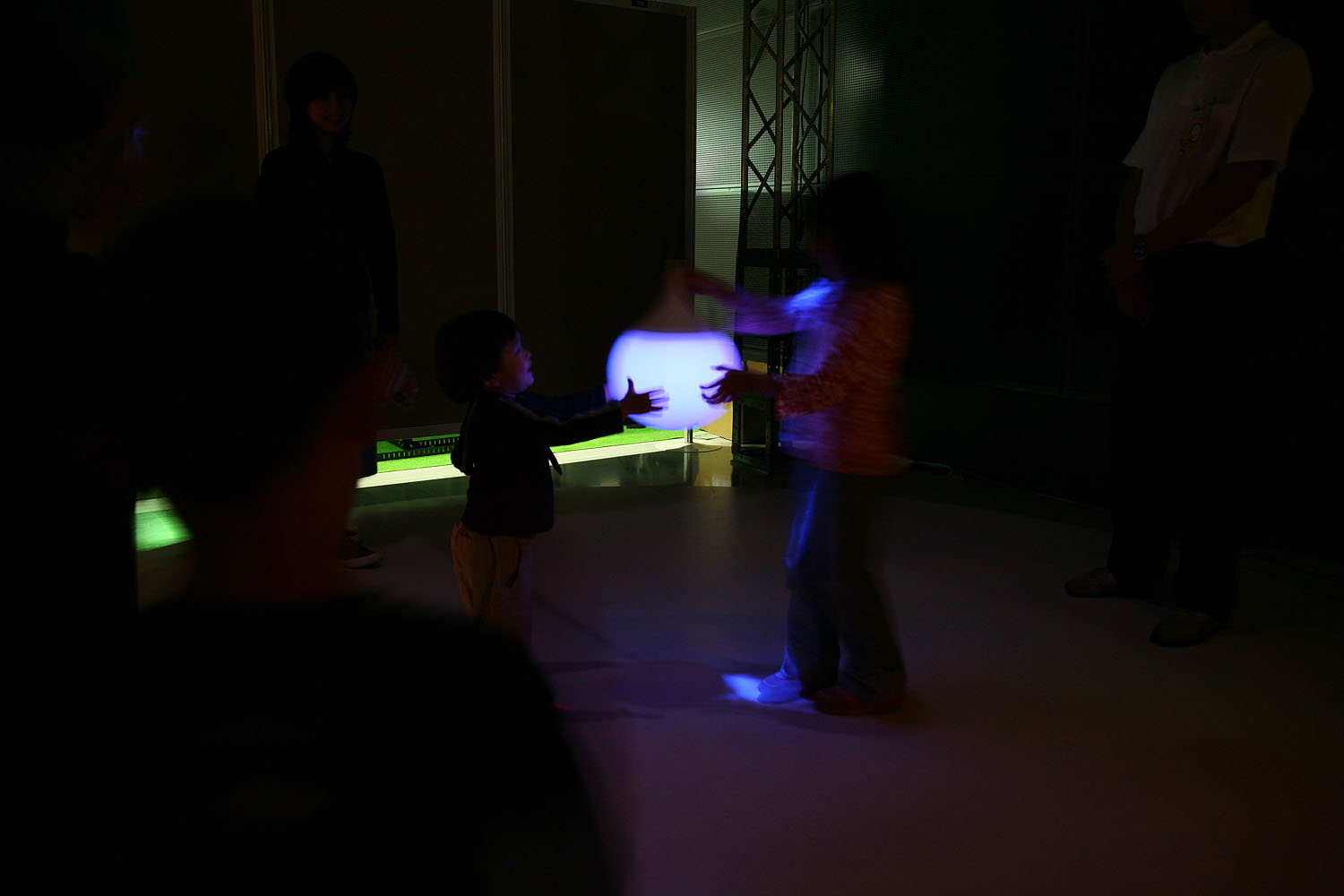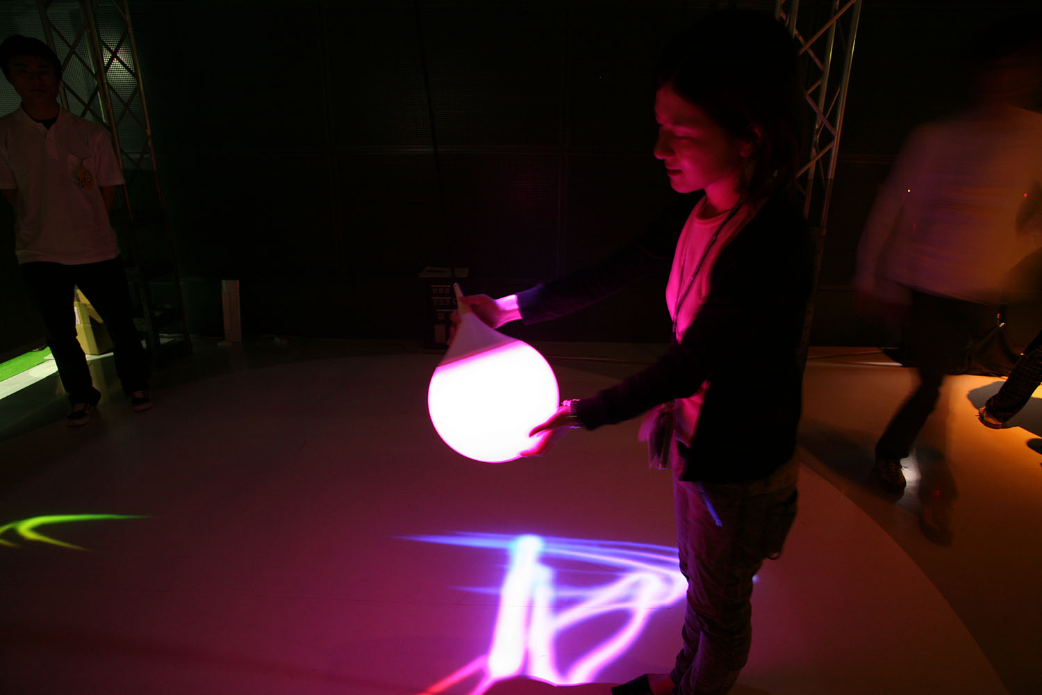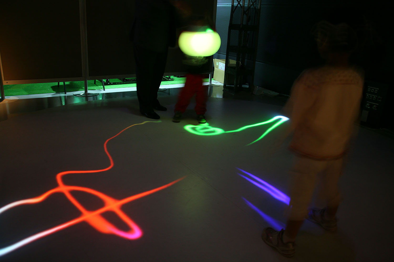 様々な色に変化する光の振り子を