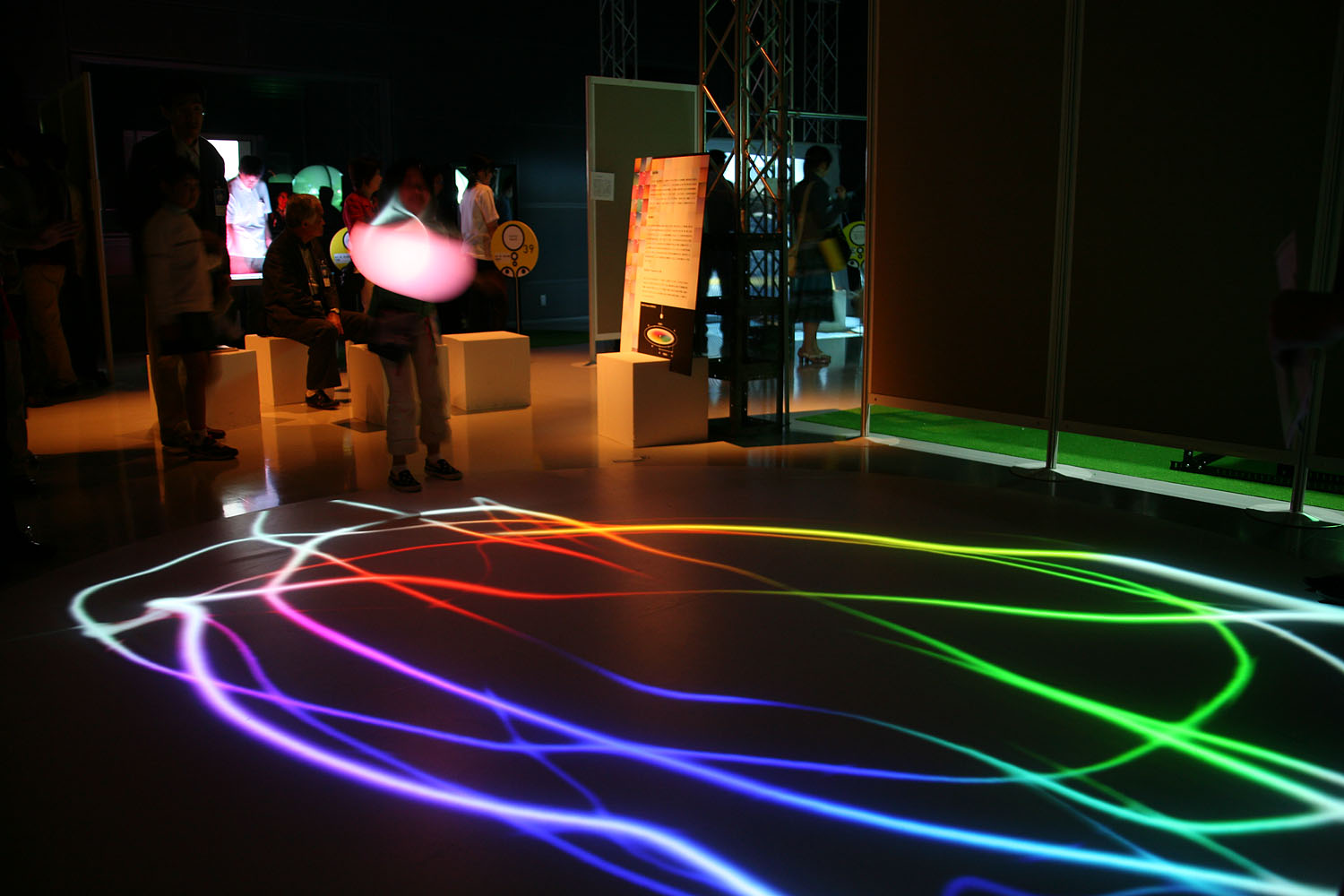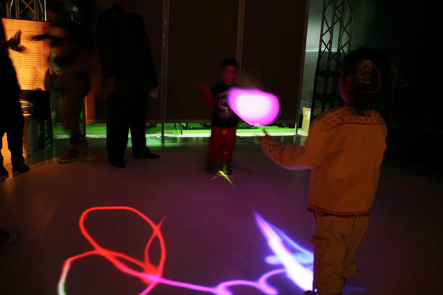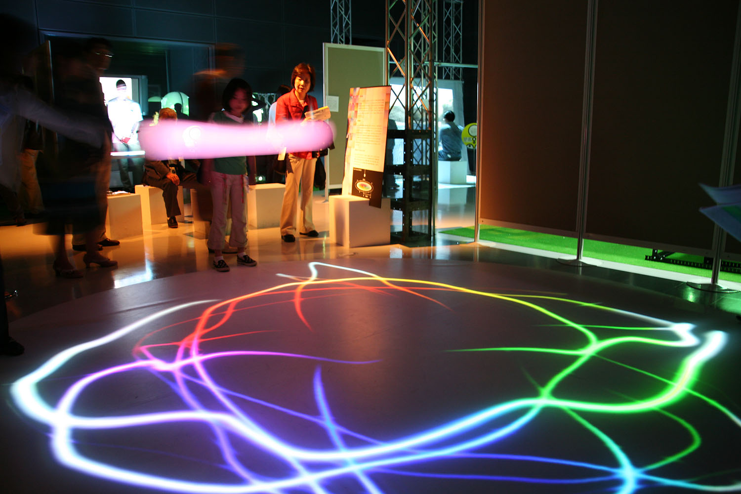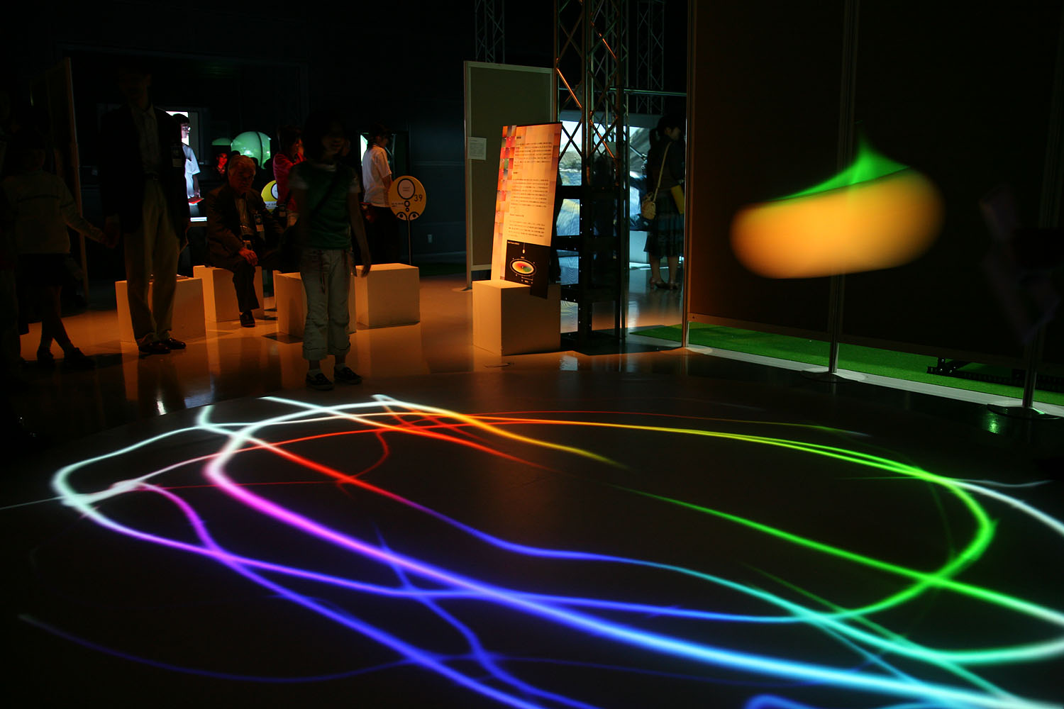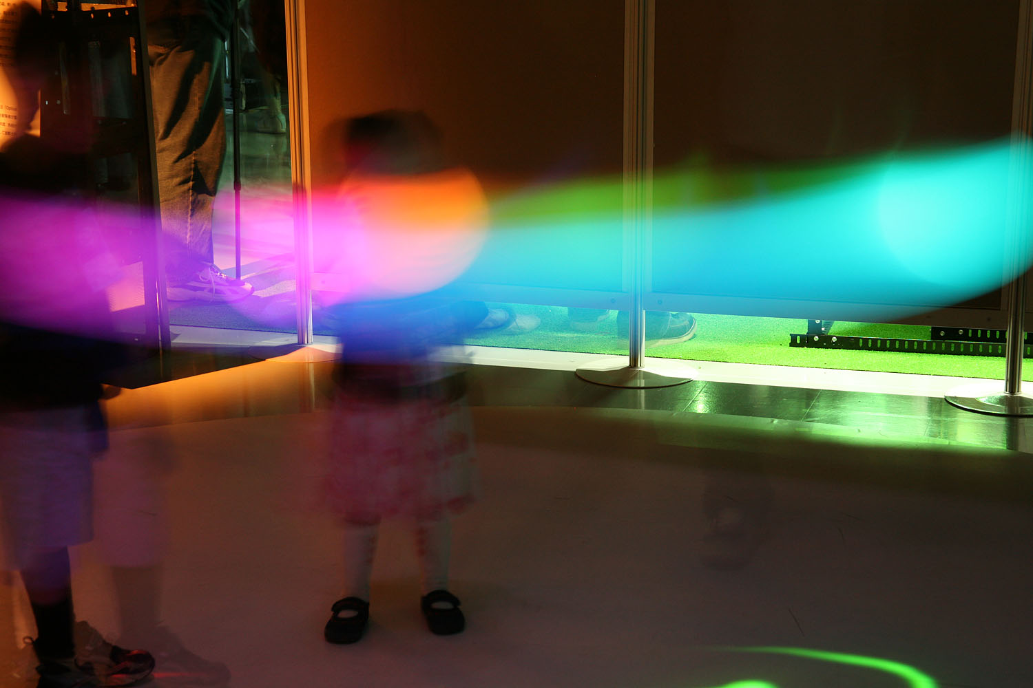 様々な色に変化する光の振り子を