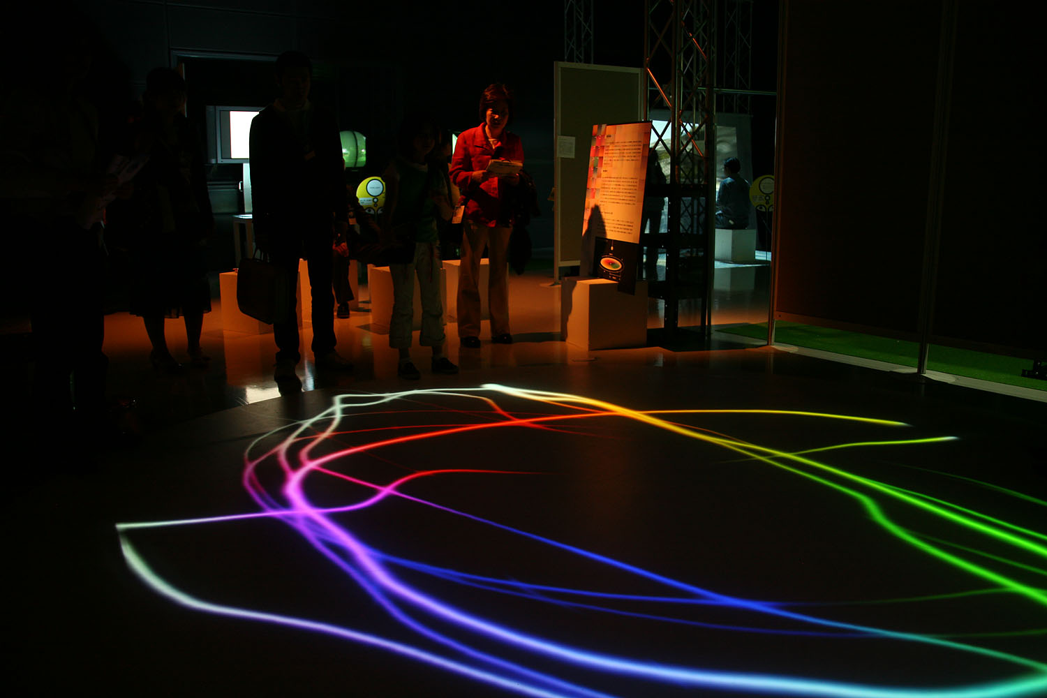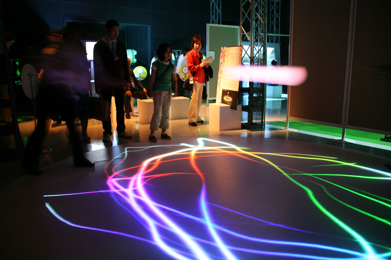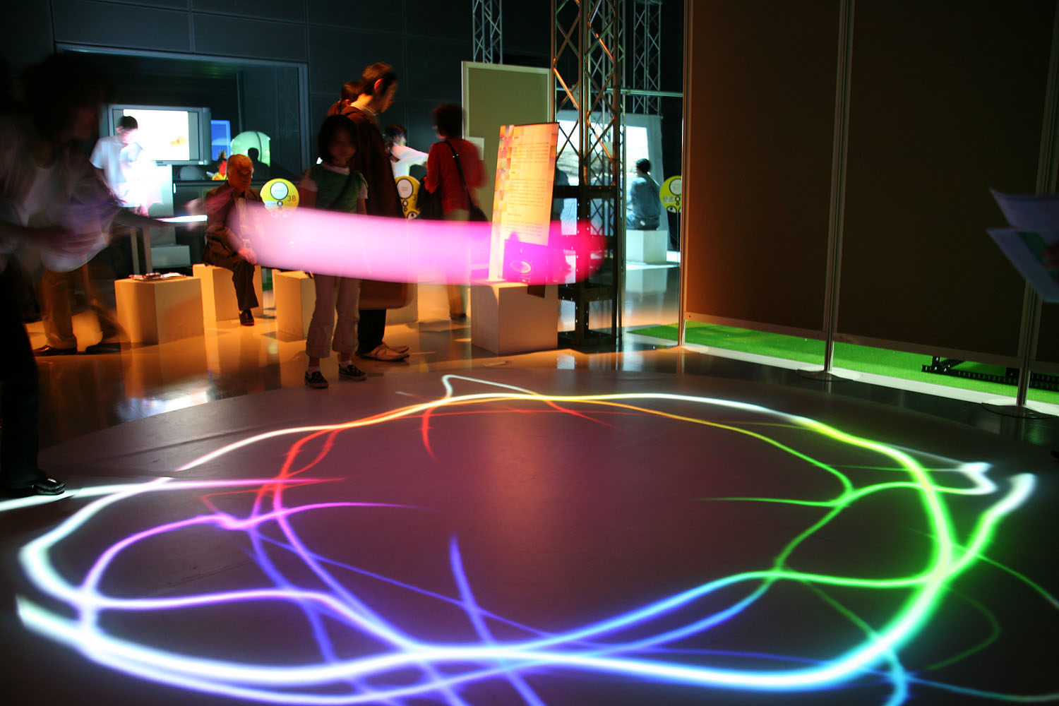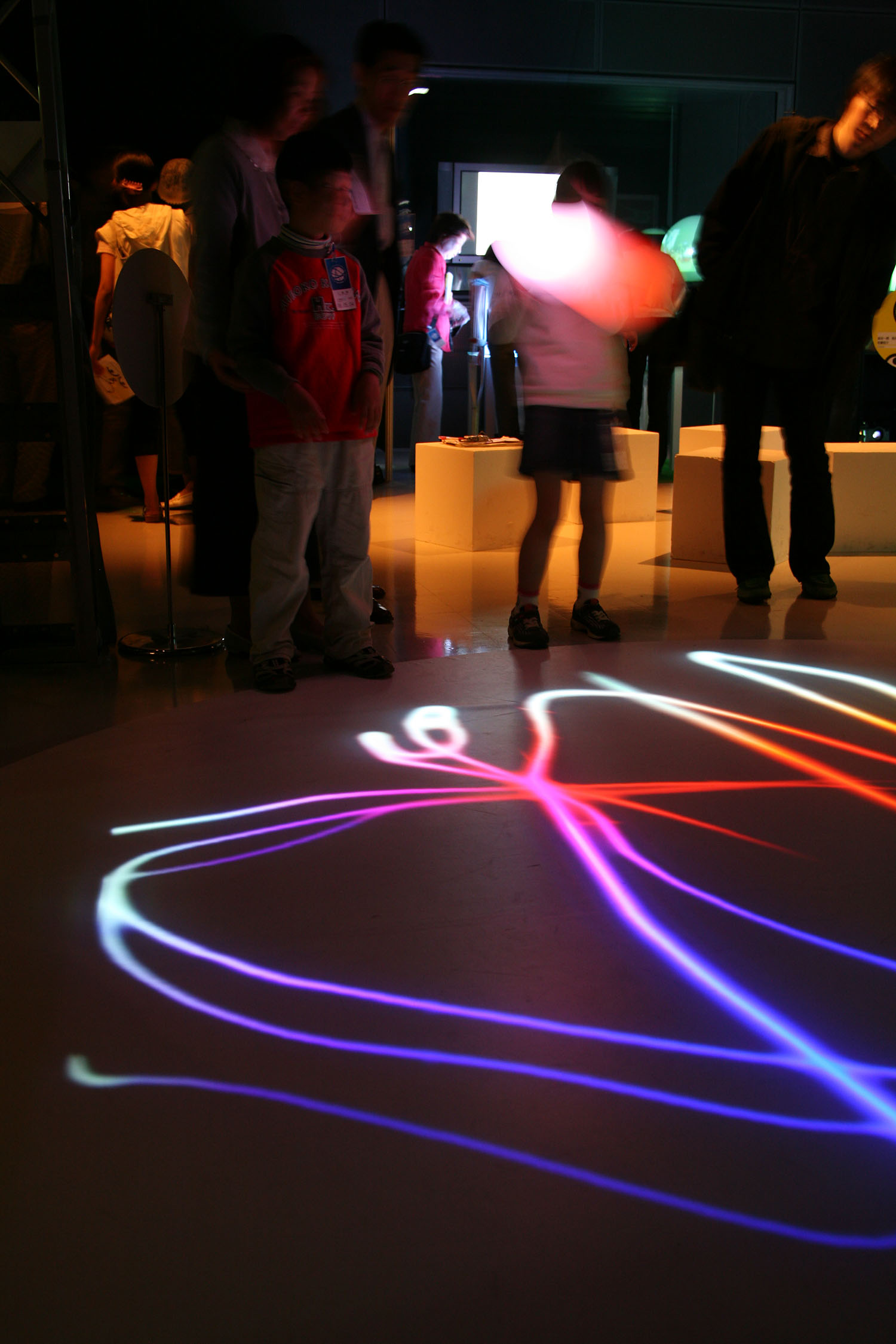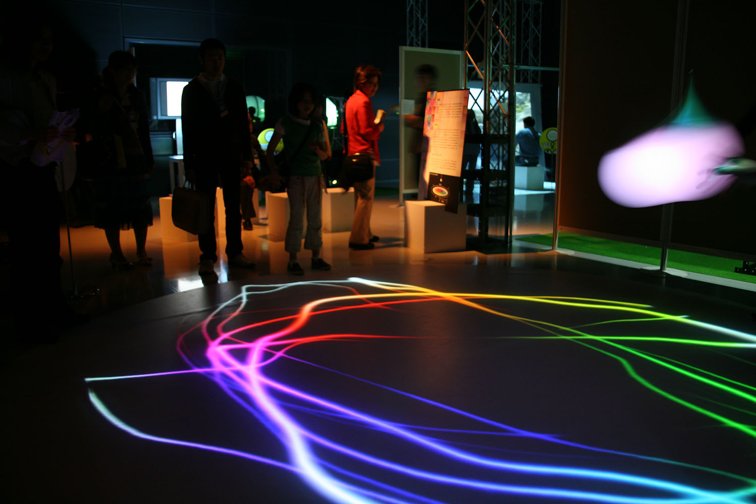 様々な色に変化する光の振り子を