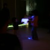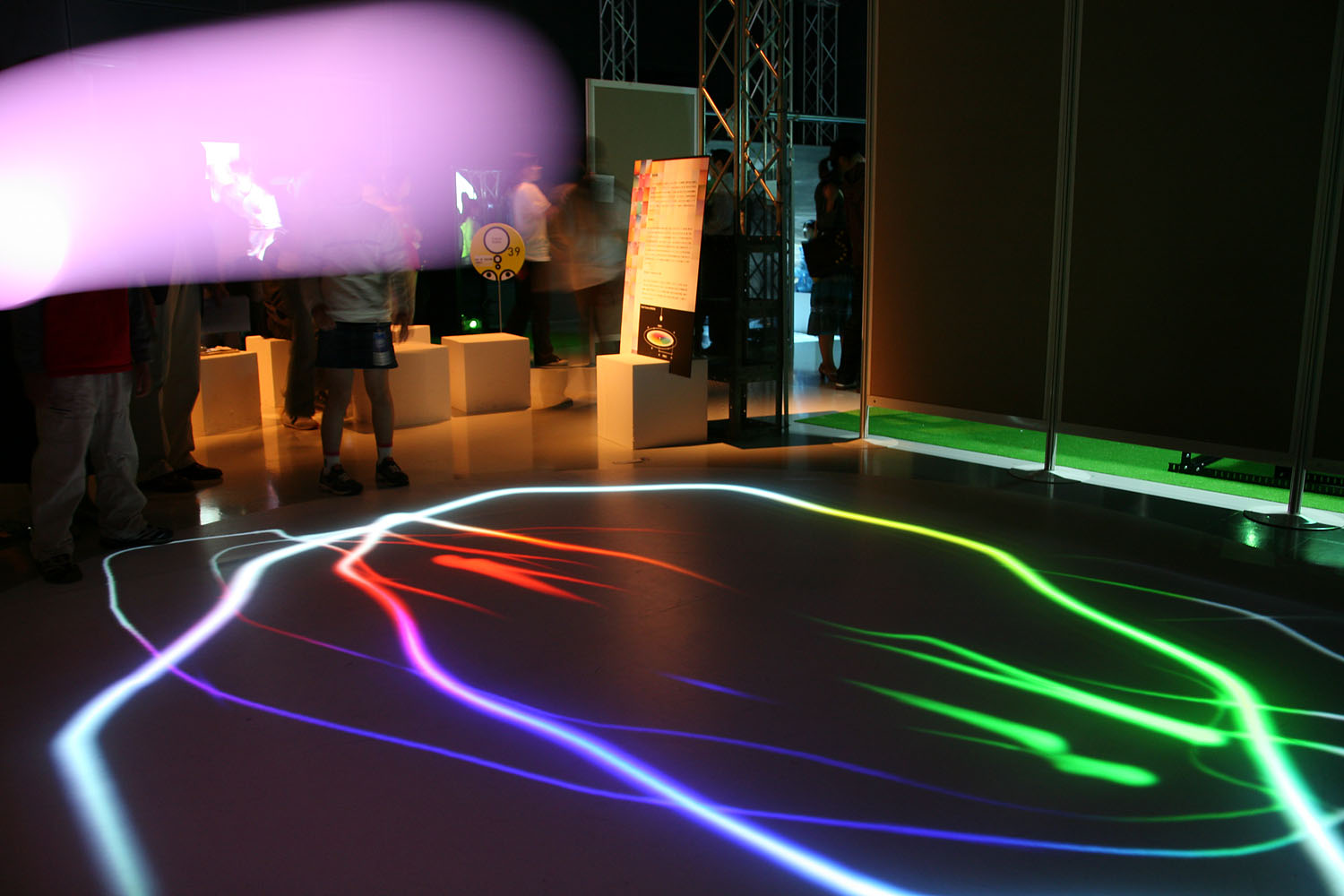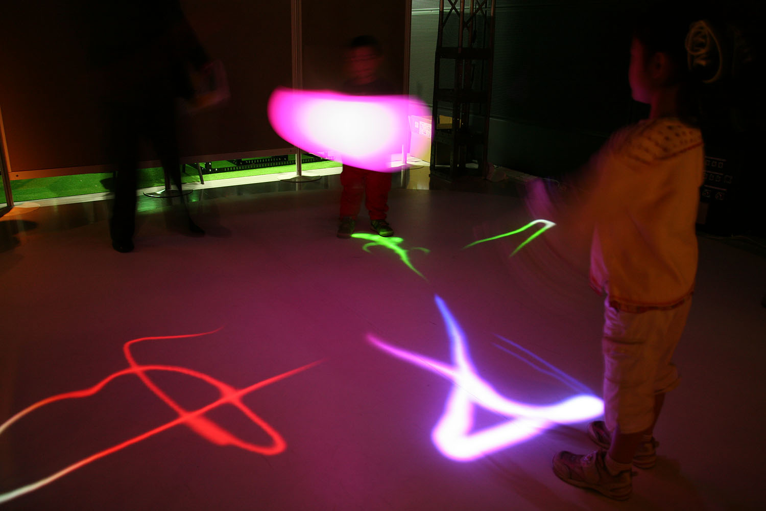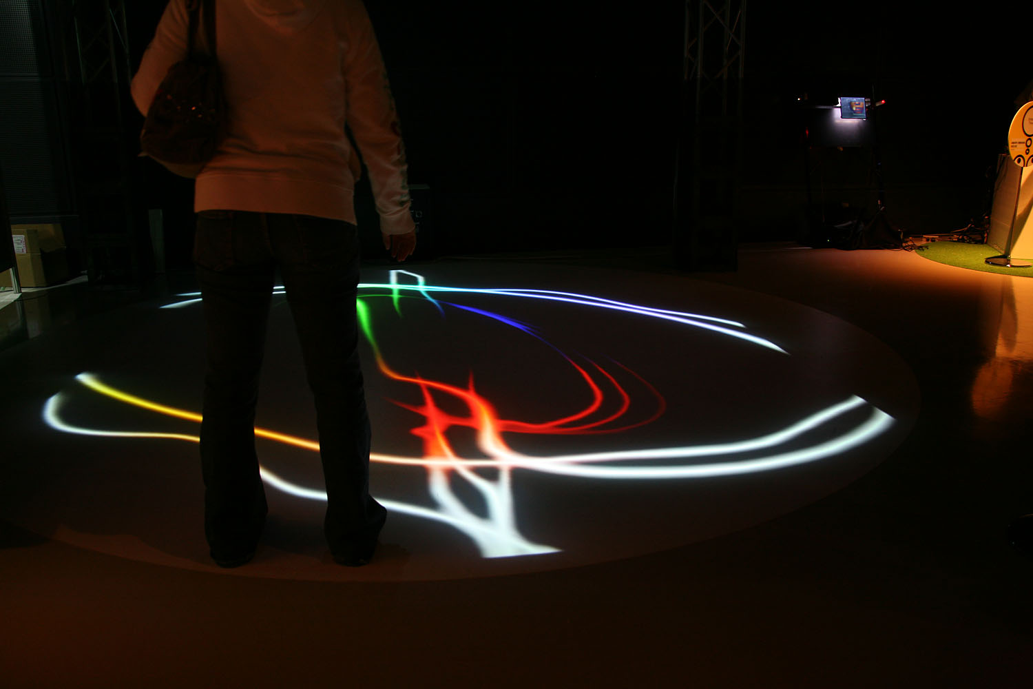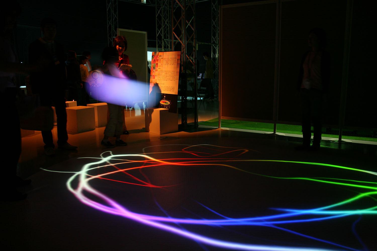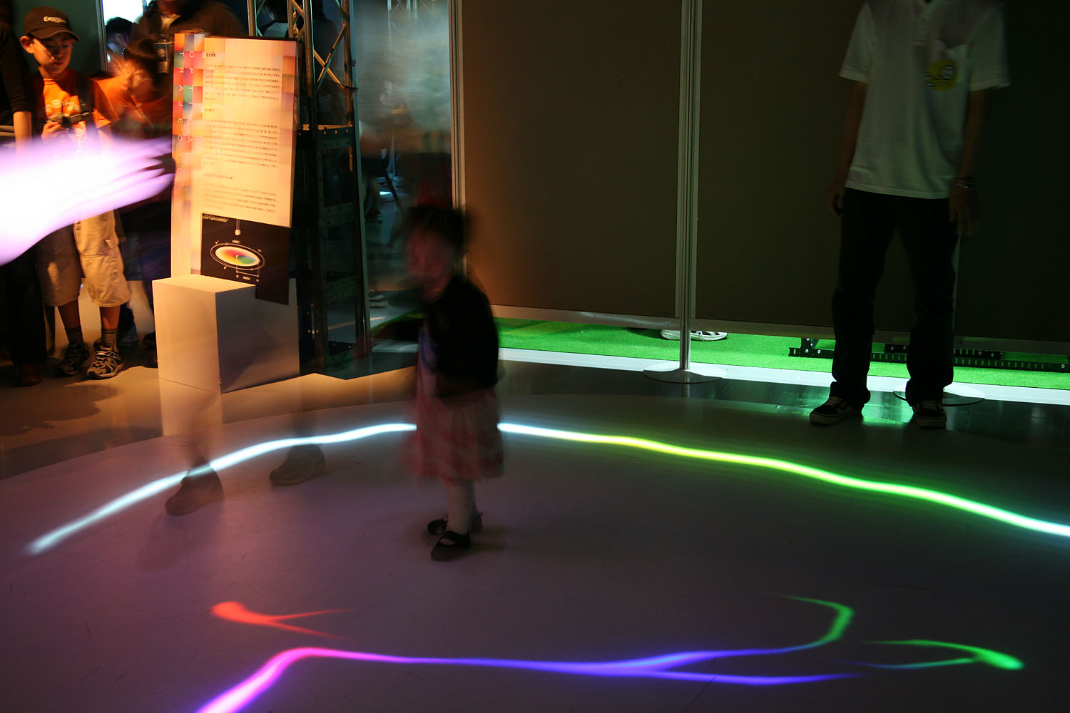 様々な色に変化する光の振り子を