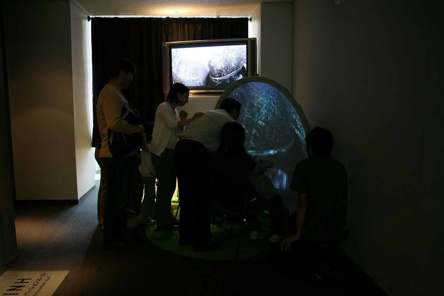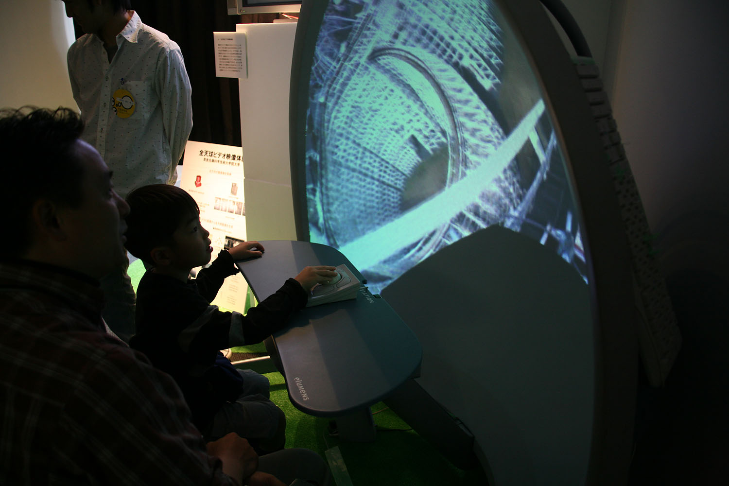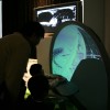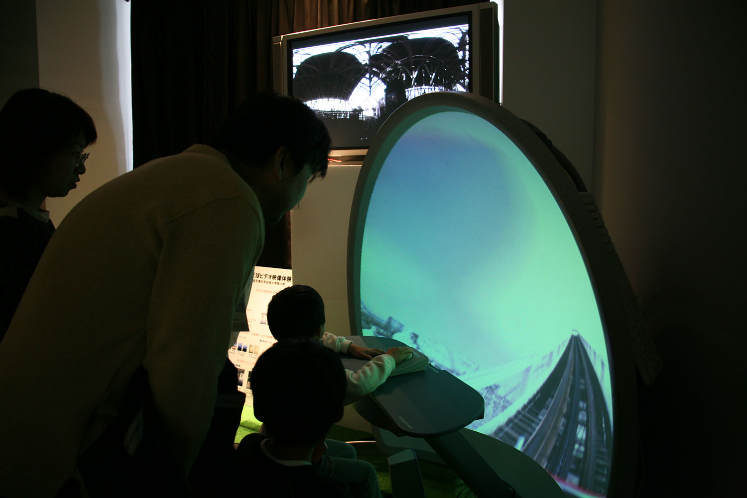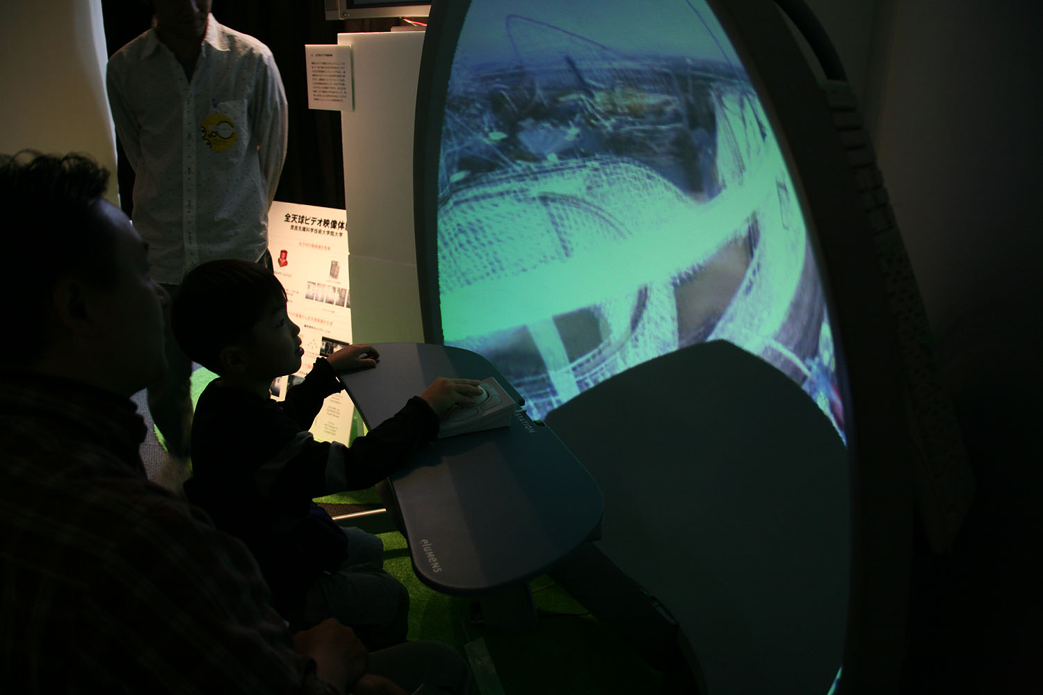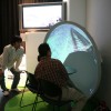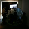 360度あらゆる方向を撮影できる カメラとドーム型のスクリーンを使って、 遠く離れた場所の映像をまるで その場にいるかのような 臨場感で再現します。