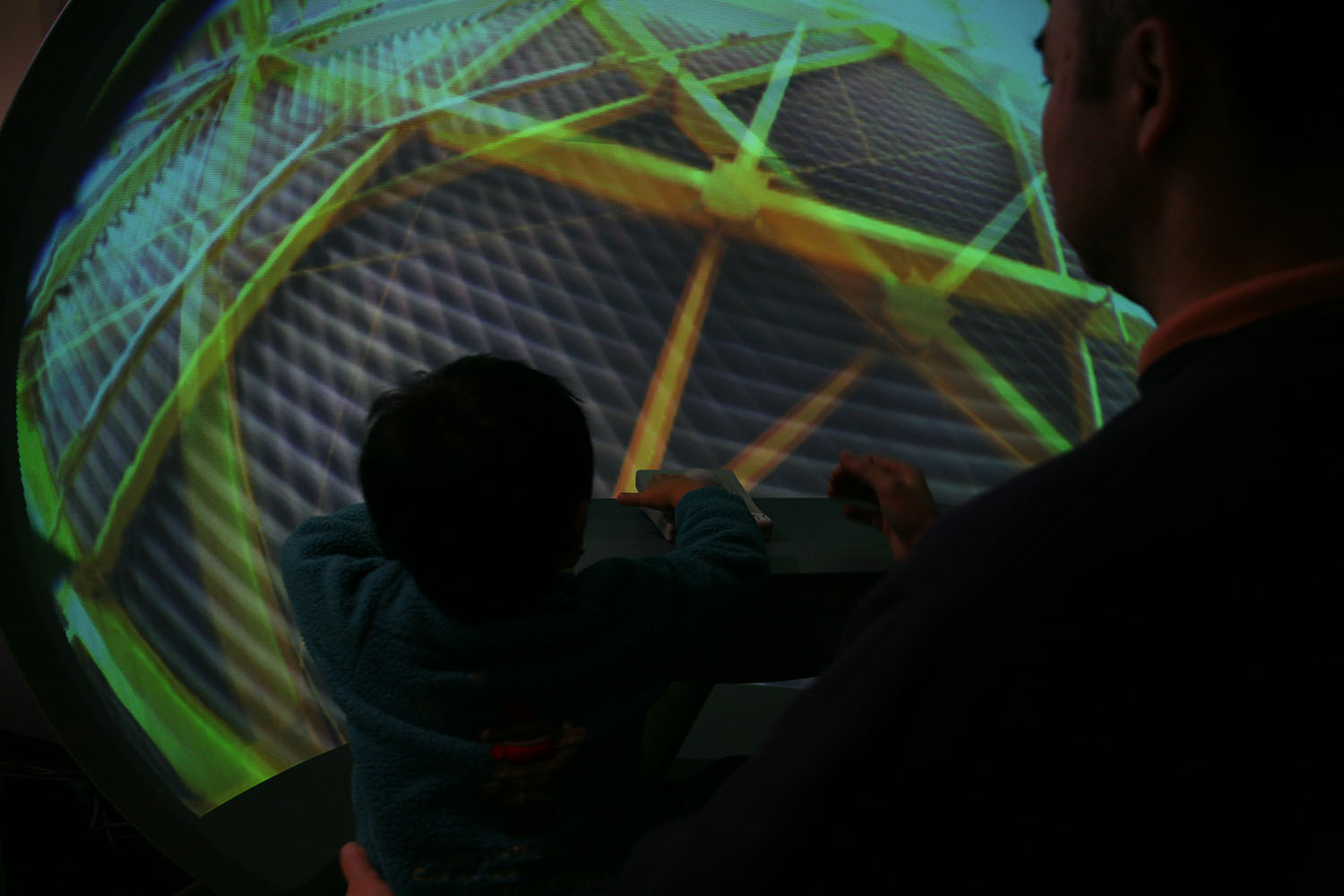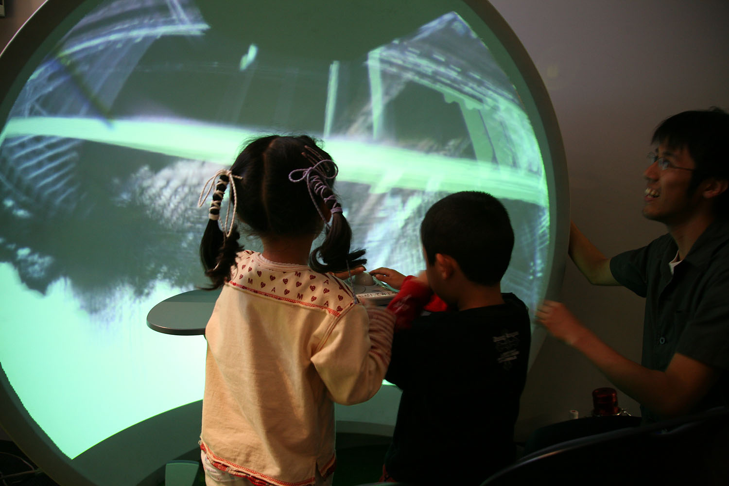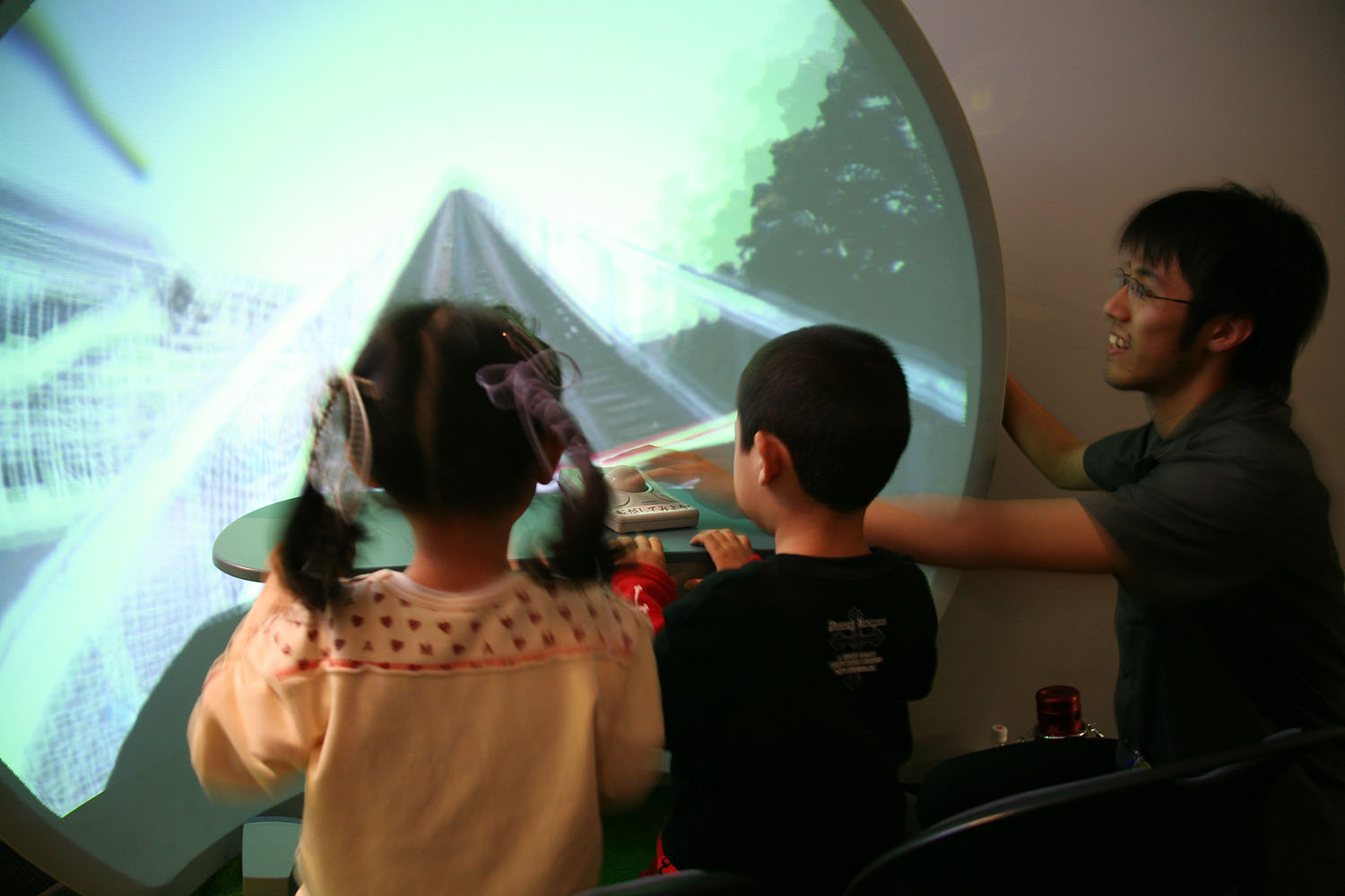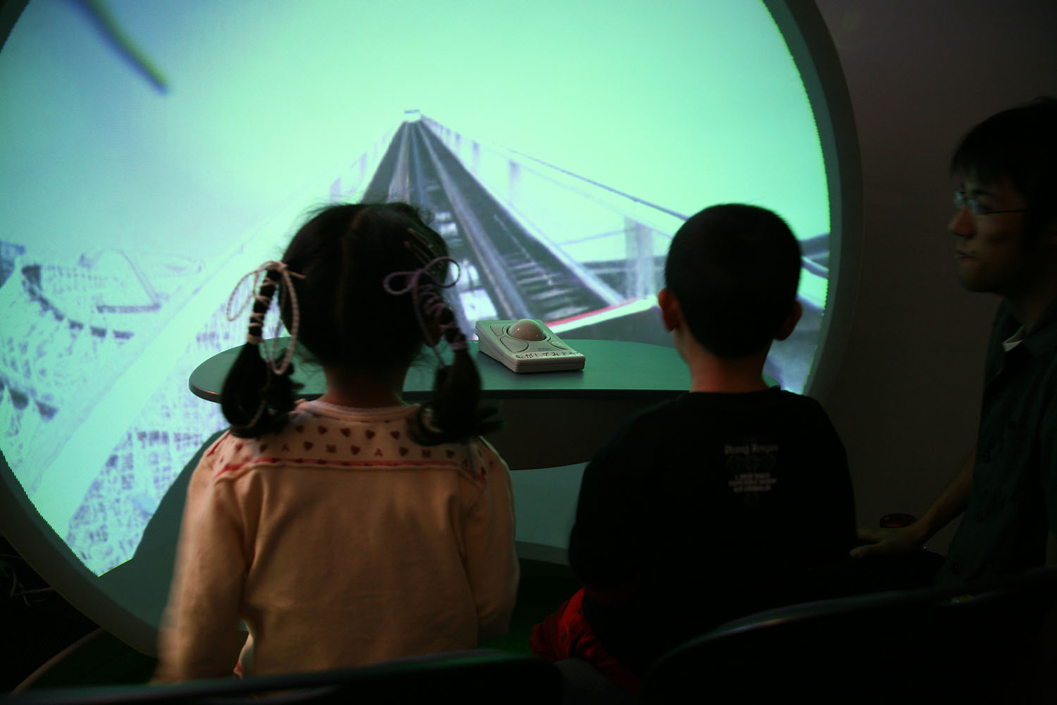 360度あらゆる方向を撮影できる カメラとドーム型のスクリーンを使って、 遠く離れた場所の映像をまるで その場にいるかのような 臨場感で再現します。