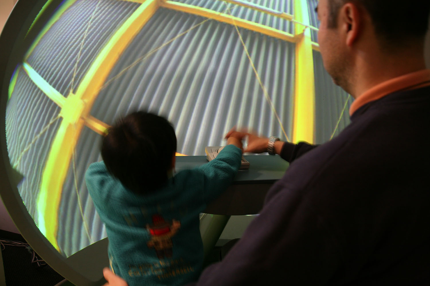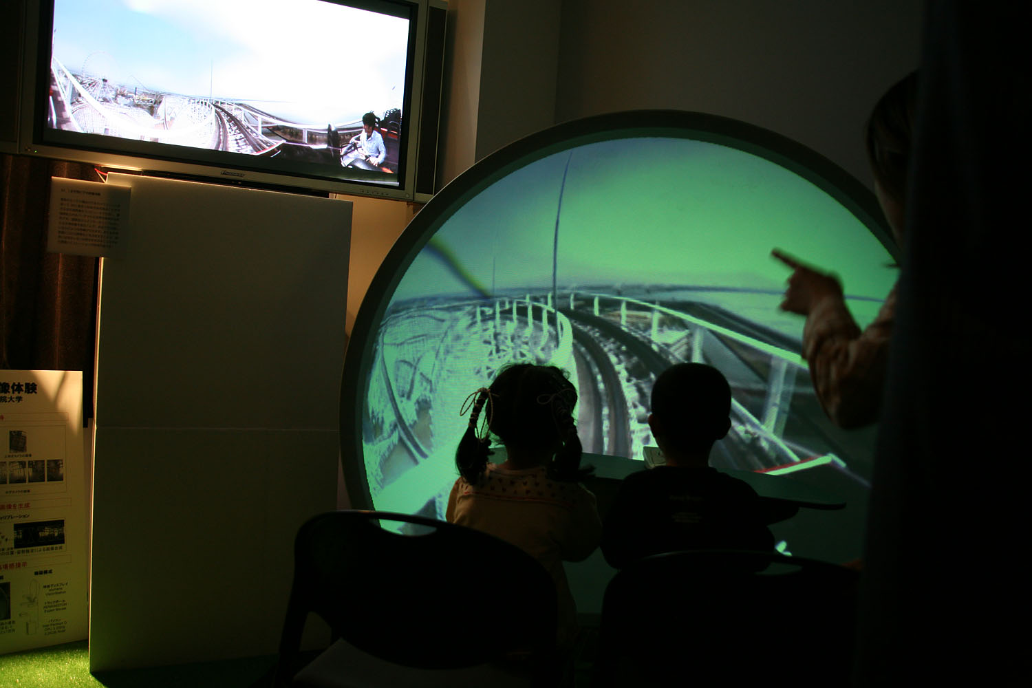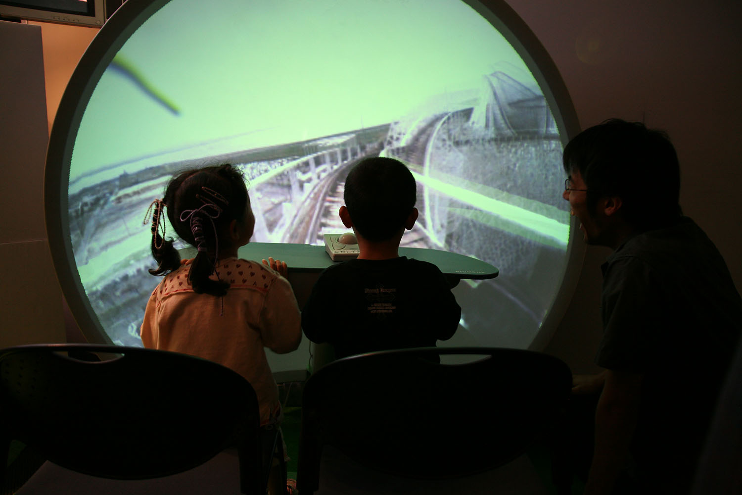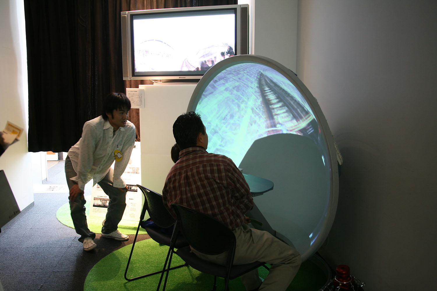 360度あらゆる方向を撮影できる カメラとドーム型のスクリーンを使って、 遠く離れた場所の映像をまるで その場にいるかのような 臨場感で再現します。